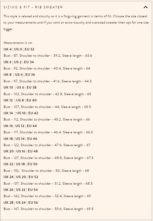 Bust / Waist / Hip (based on standard UK measurements) - Measurements in cms