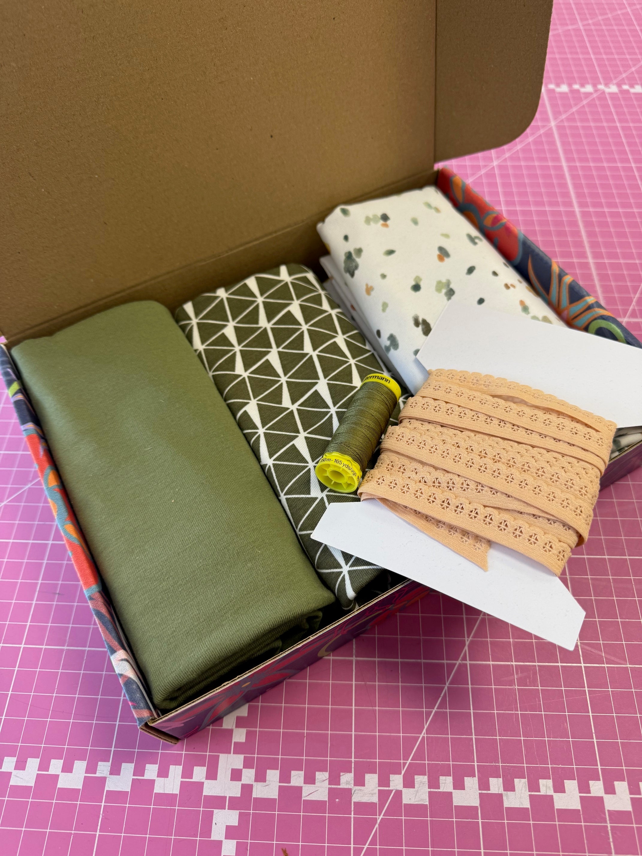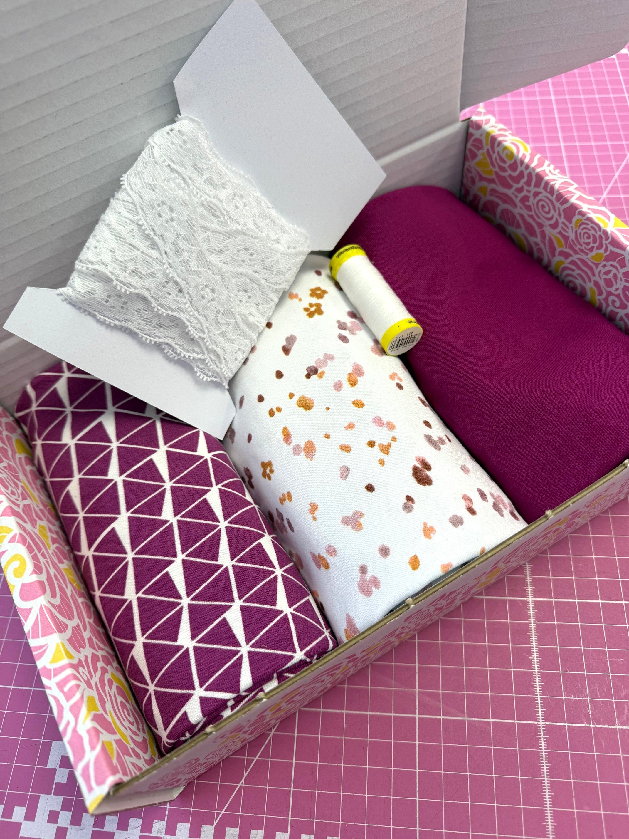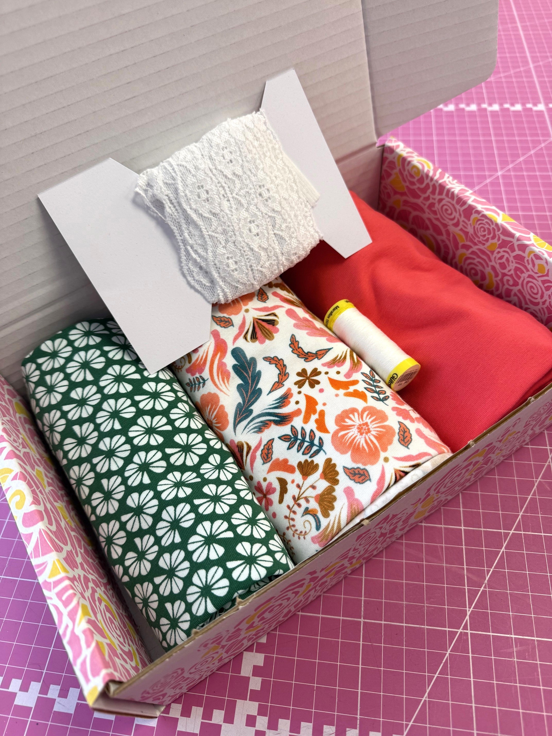 We ship on the 15th of the month. Sit back and wait for a box of gorgeous sewing goodies to arrive
