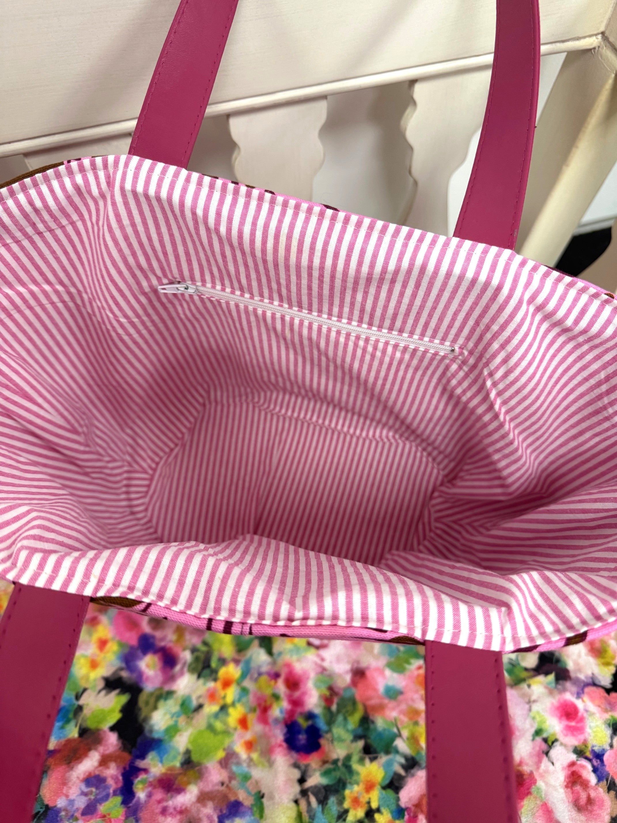 This is our new and elevated take on the Crescent Tote Bag! Made with beautiful MONSTERA LEAF canvas and finished with faux leather handles, this kit is all about turning a practical tote into something extra special.