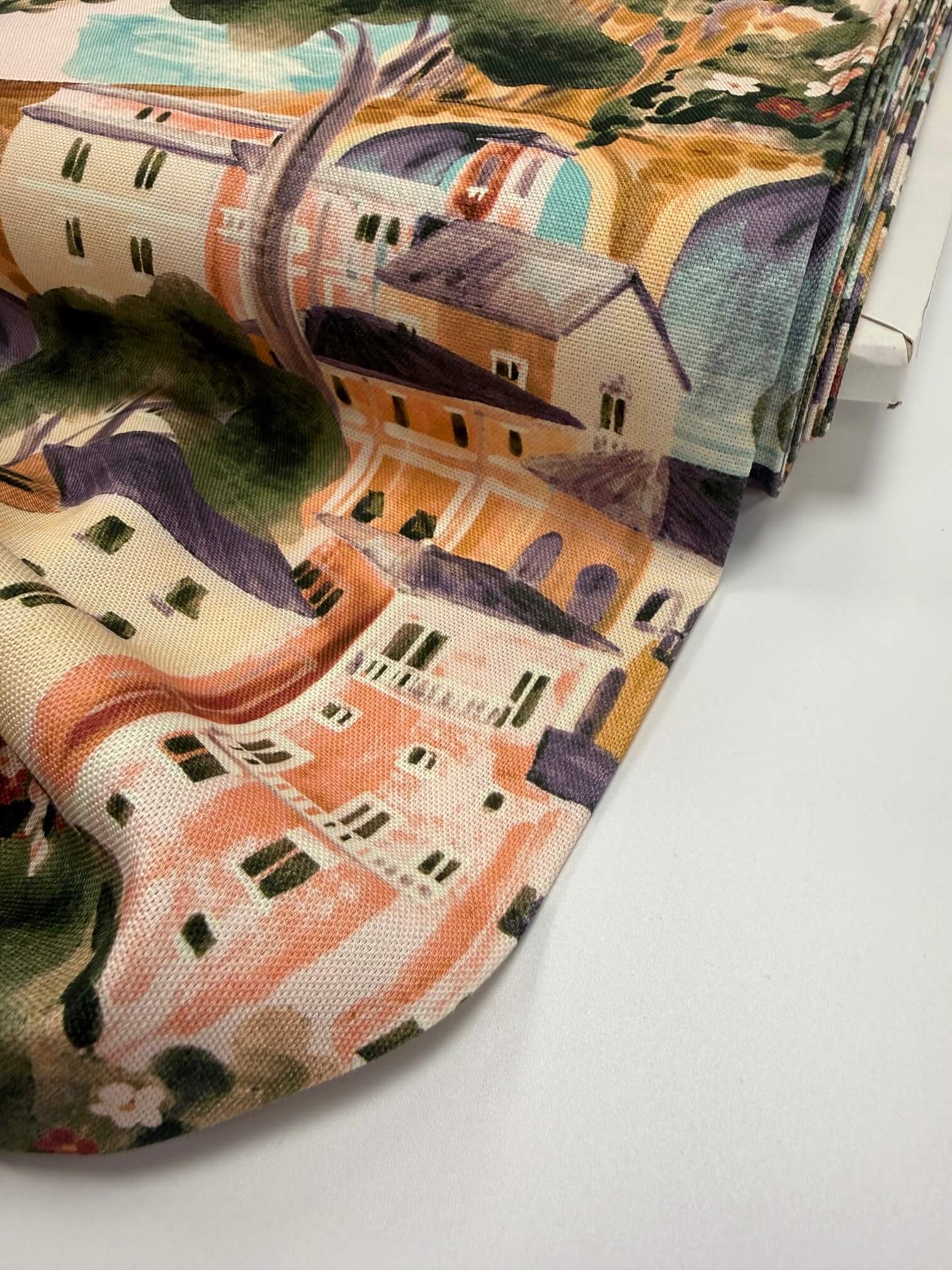 Riverside Reverie is a romantic, hand-painted scenic print that feels like stepping into a sun-warmed European daydream. Softly illustrated buildings nestle among winding rivers, arched bridges and lush greenery, all brought together in a gentle, watercolour-style palette that feels calm, creative and quietly special.
