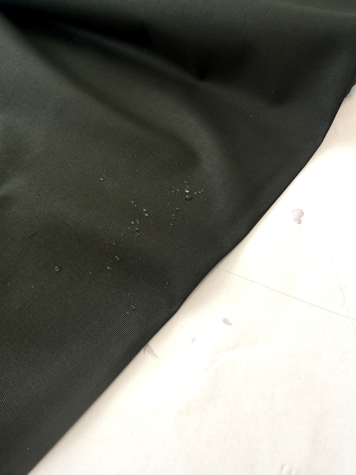 The fabric has been tested for water resistance in accordance with ISO 811:2014 and achieves a 2200mm water column rating, meaning it offers reliable protection against rain and light moisture exposure. While showerproof and rain-resistant, it is not intended to withstand sustained or excessive pressure.