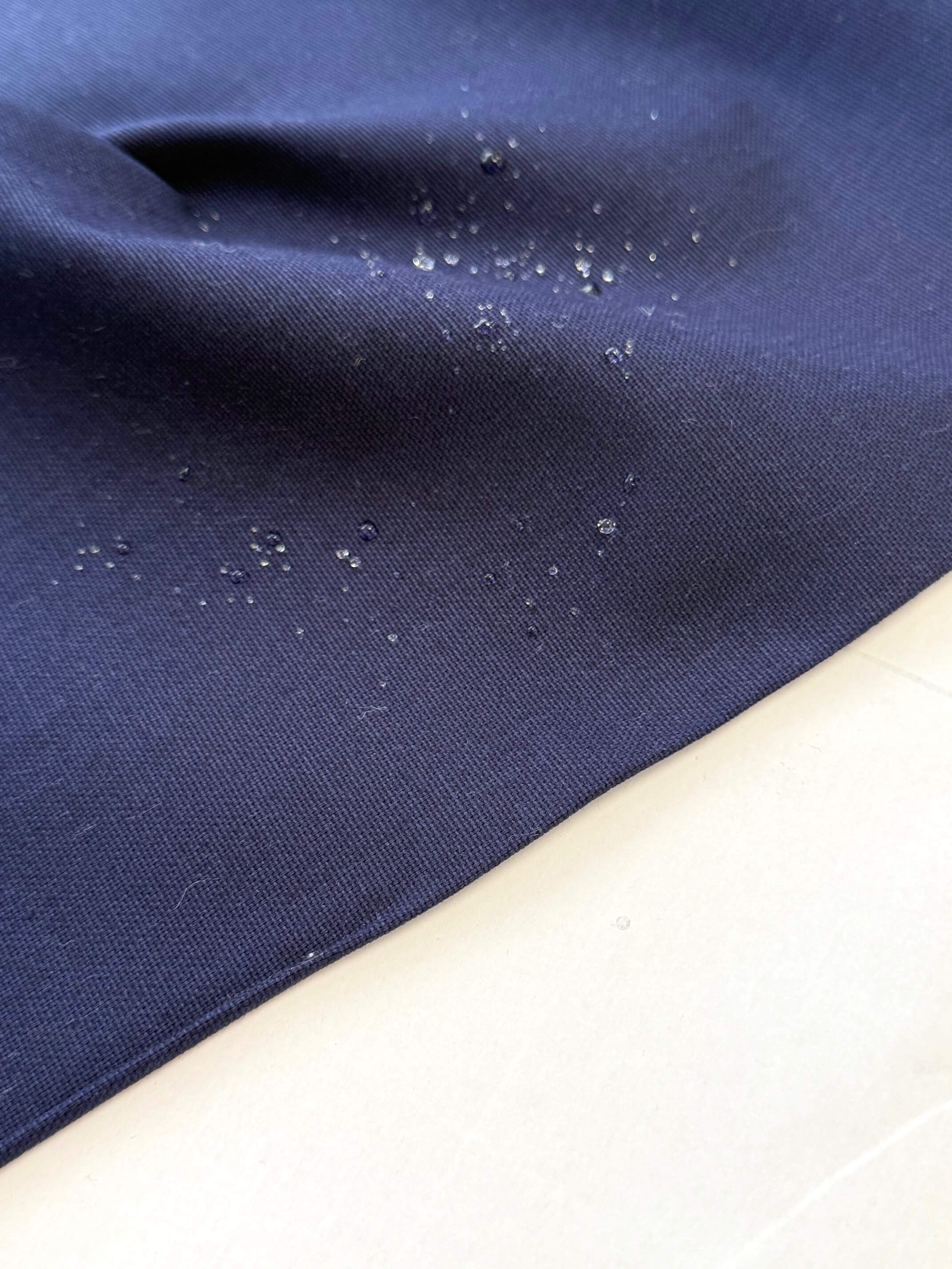 A beautifully practical cotton canvas that looks and feels just like standard cotton canvas, with no visible or stiff exterior coating. Unlike traditional waterproof or laminated fabrics, this material retains a soft, pliable handle, making it comfortable to sew and wear while preserving a natural textile appearance.