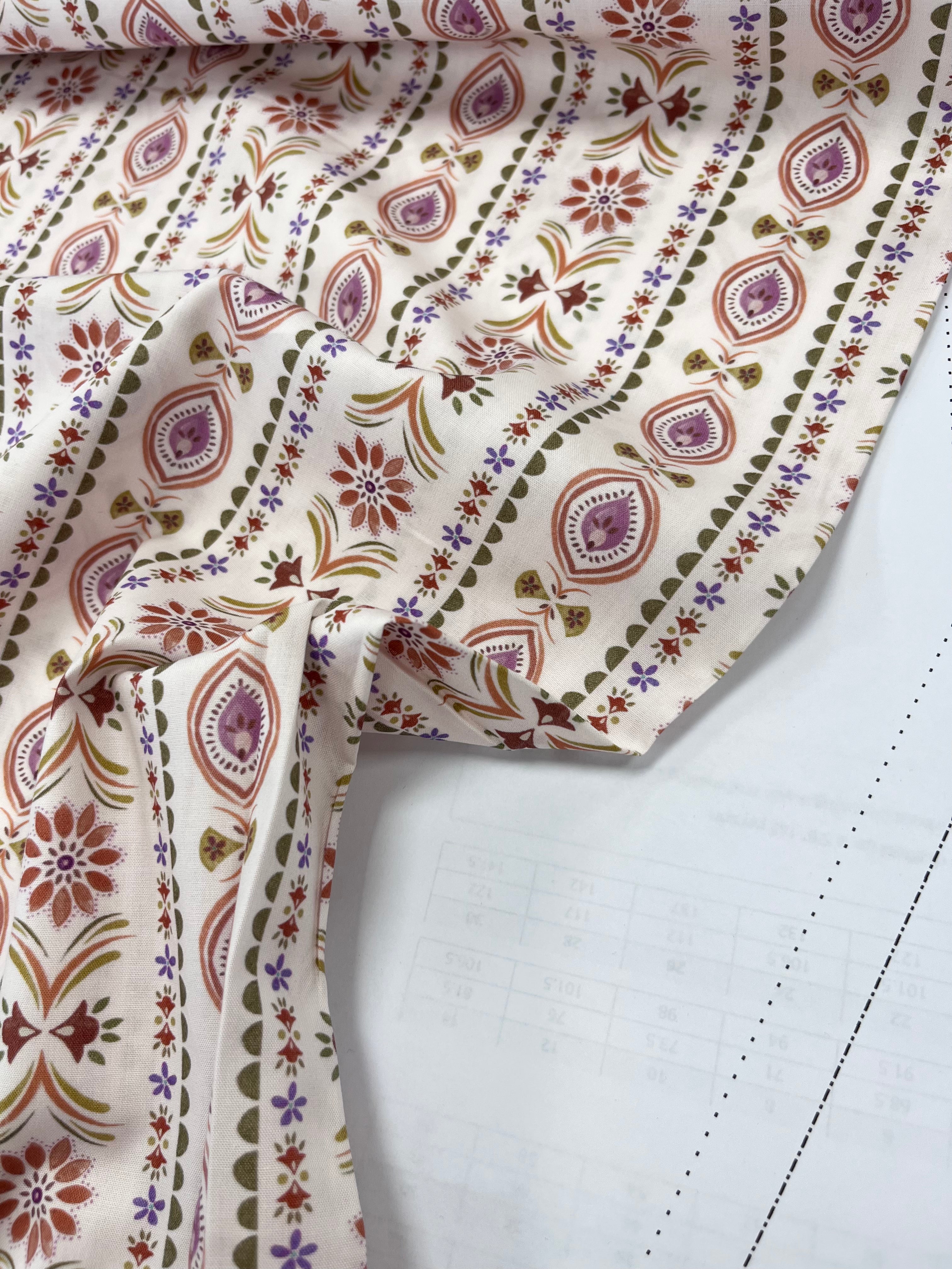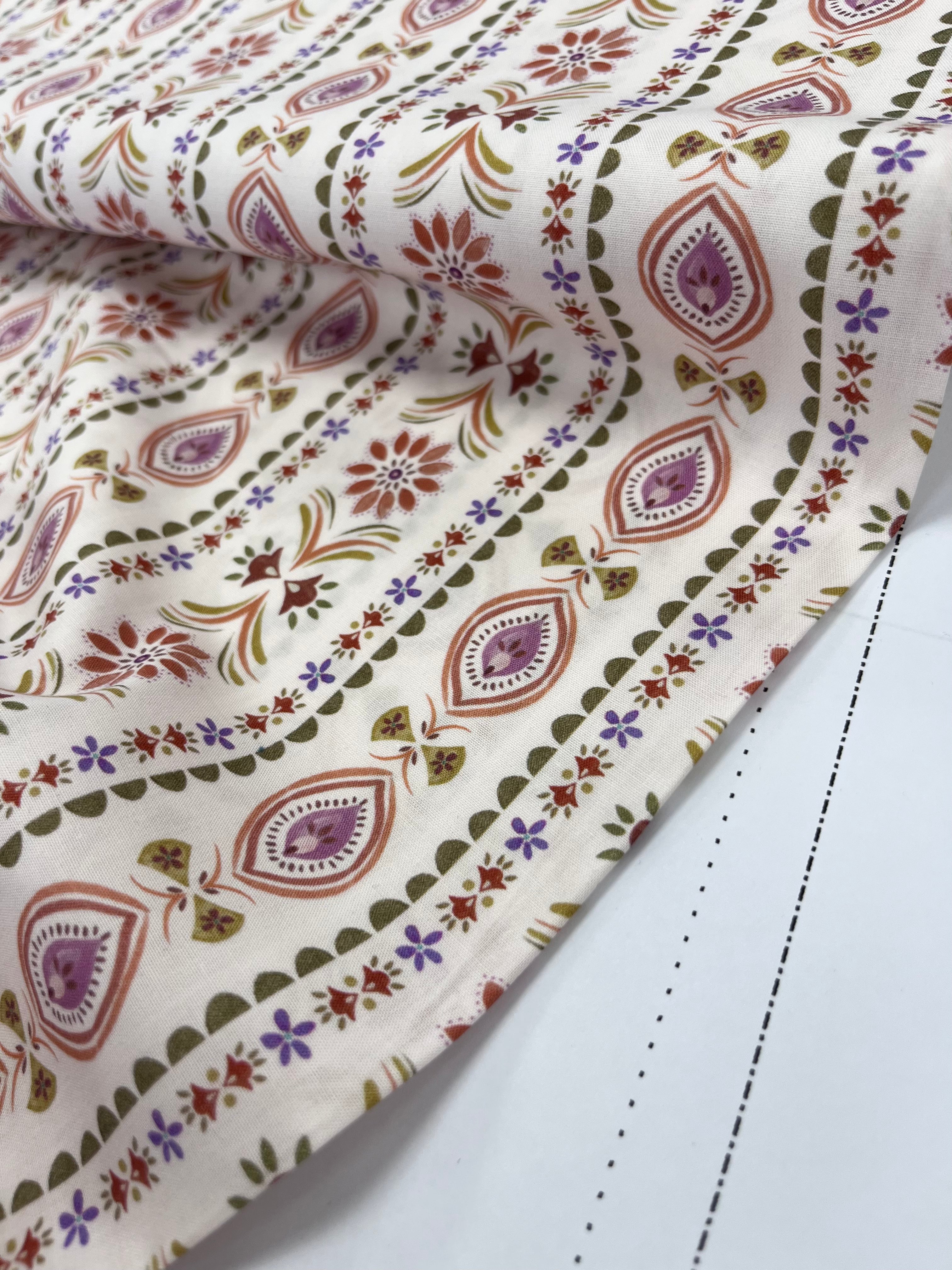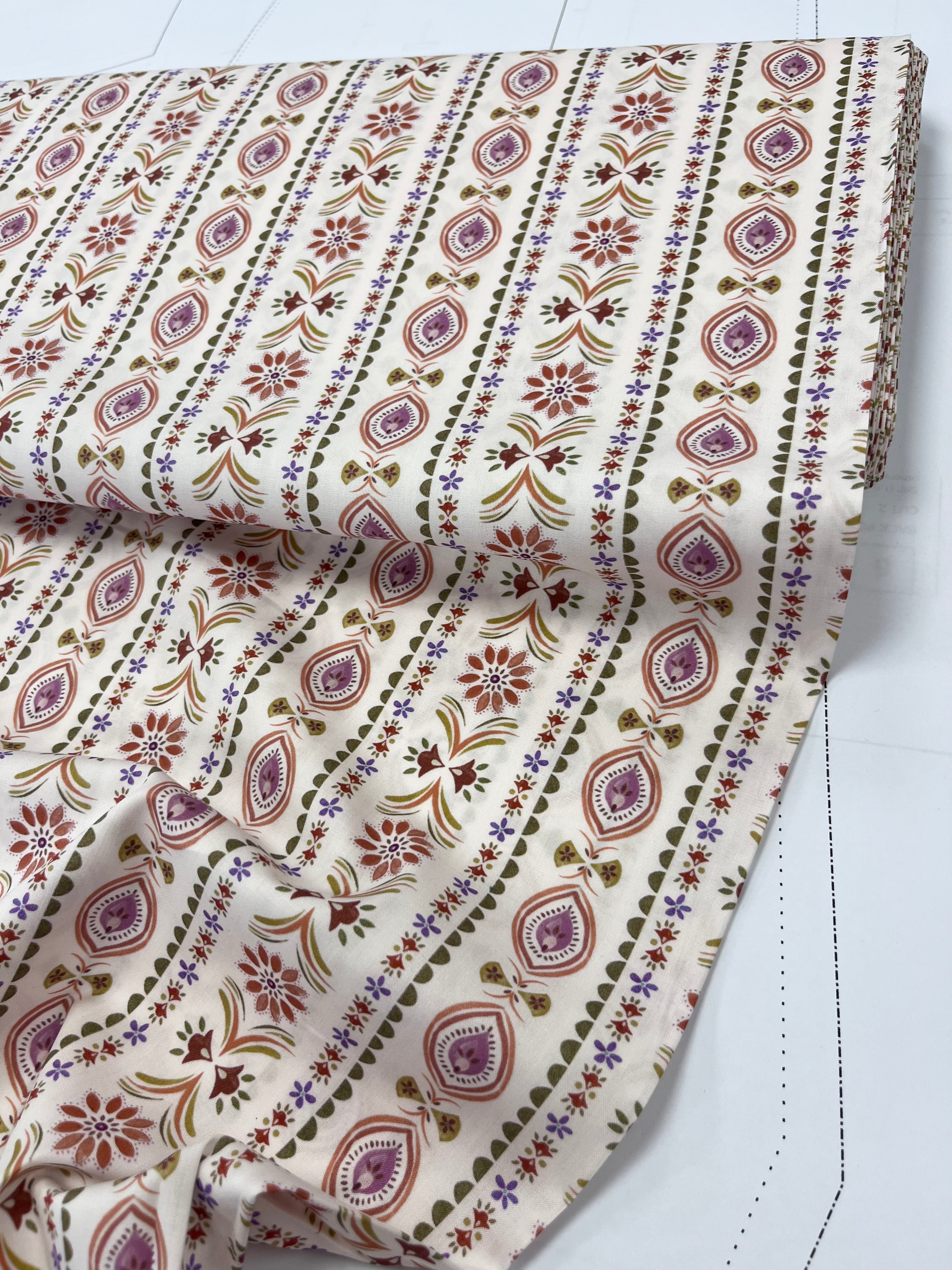 Floral Pagoda Stripe | Fine Poplin | Off White