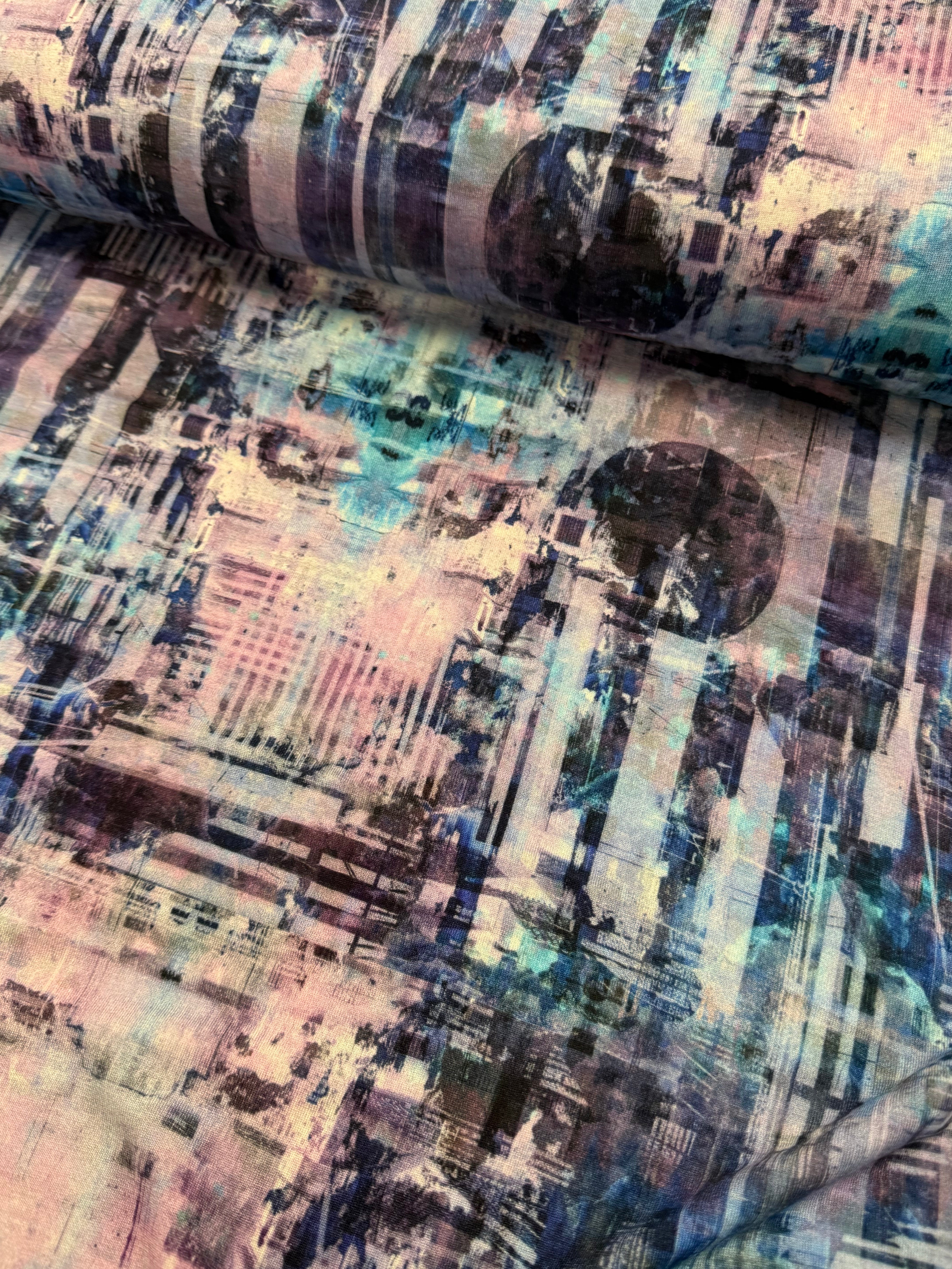 Urban Pastel – abstract cityscape-inspired design in lilac, aqua, and navy tones.
