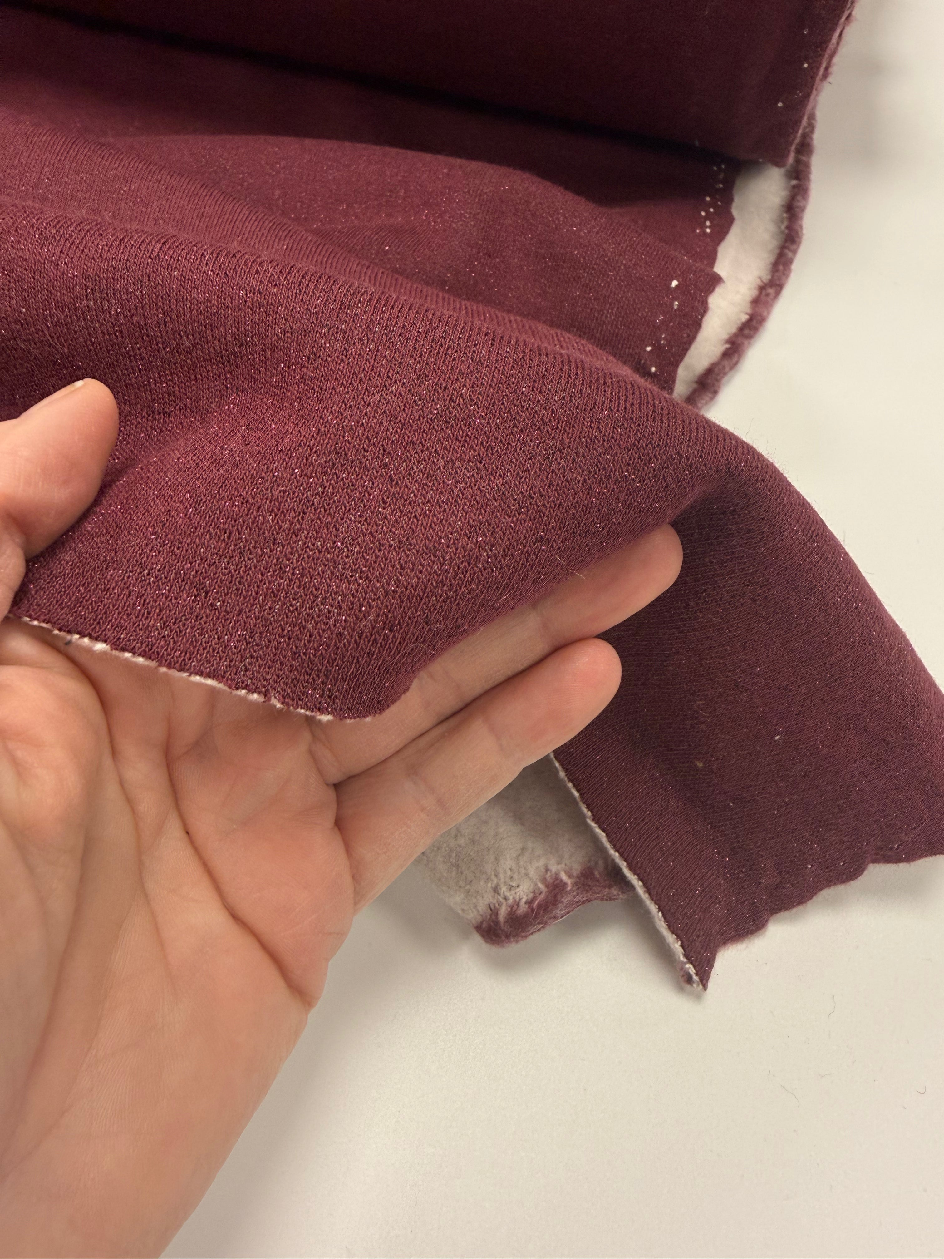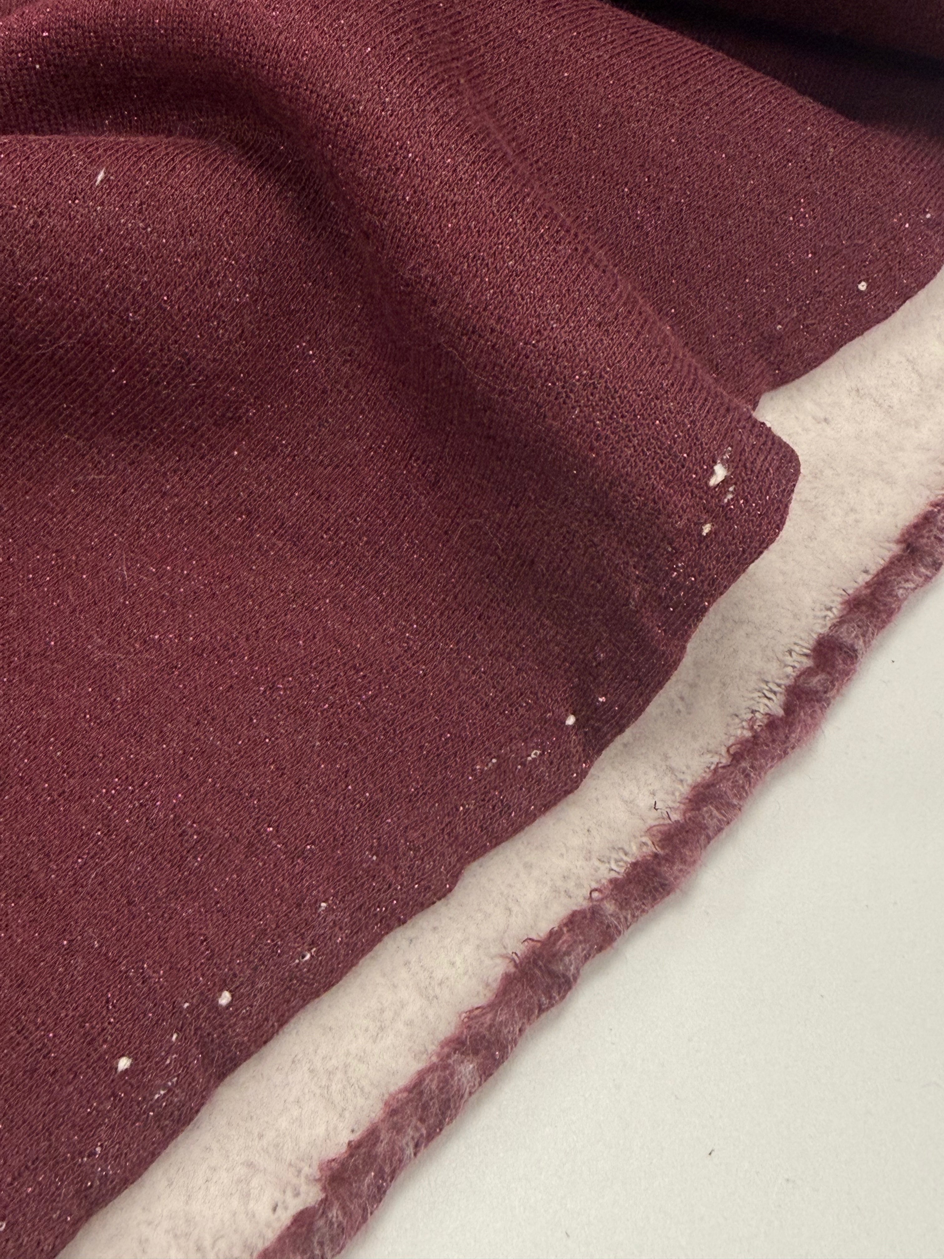 REMNANT | Winter Glow Sparkle Sweatshirting | Burgundy .65MTR