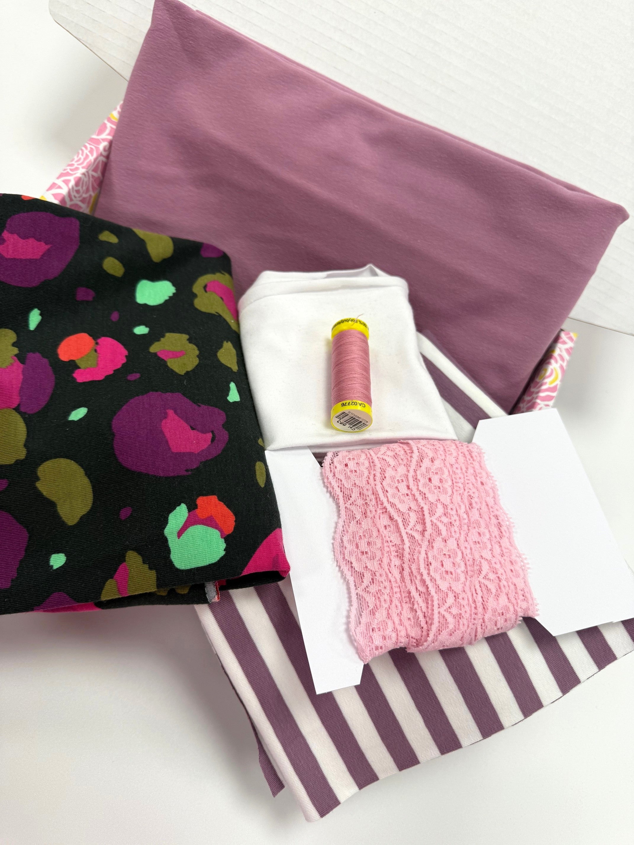 Each kit has enough fabric & stretch lace to make 4-6 pairs of comfy knickers depending on what pattern you use.