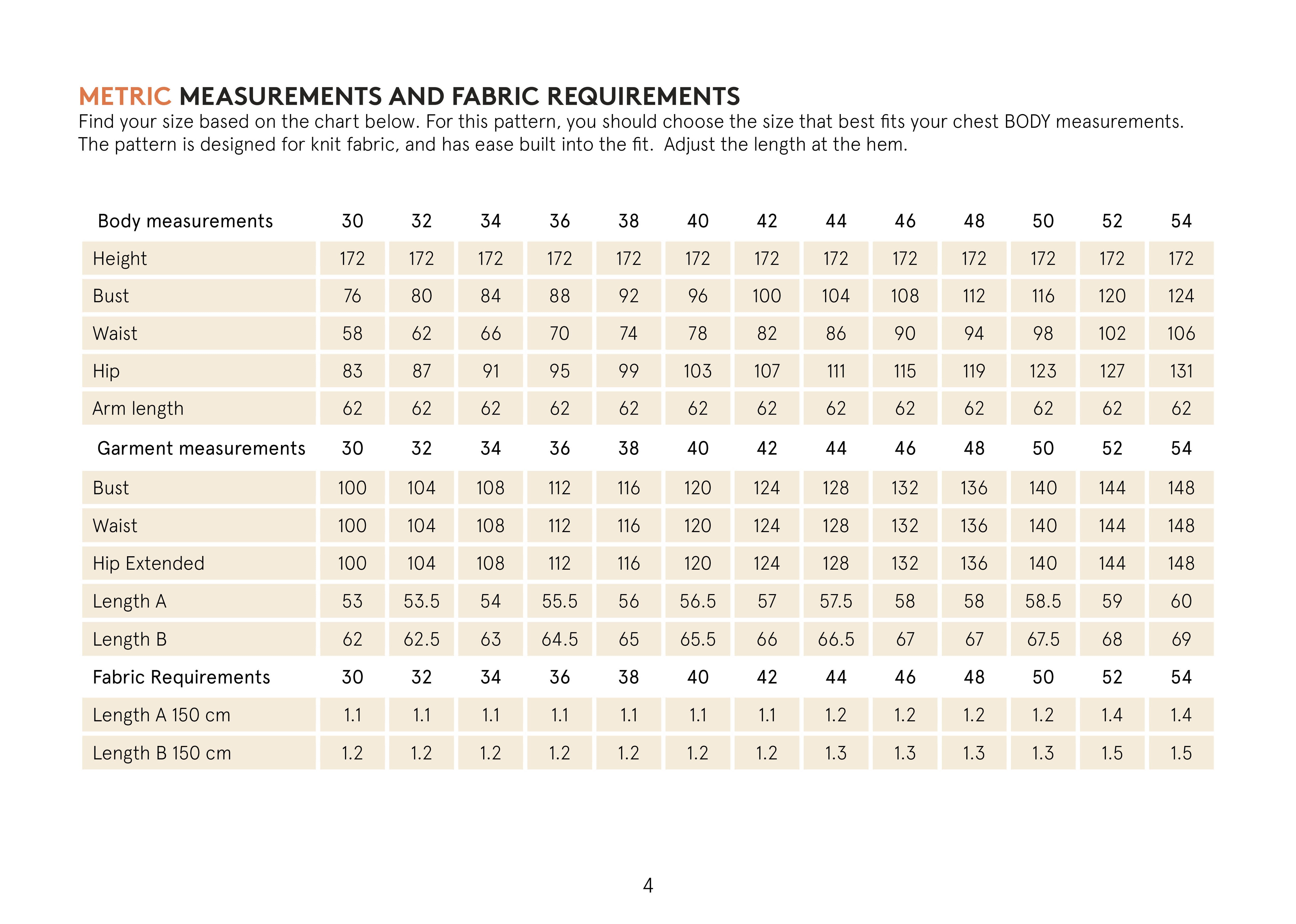 Flip through the images to find fabric requirements and measurements for the sweater pattern.