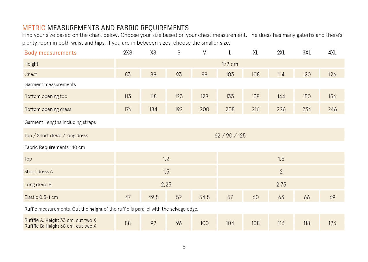 • Fabric Requirements and Measurements: Flip through the images to find detailed fabric requirements and measurements to ensure a perfect fit.