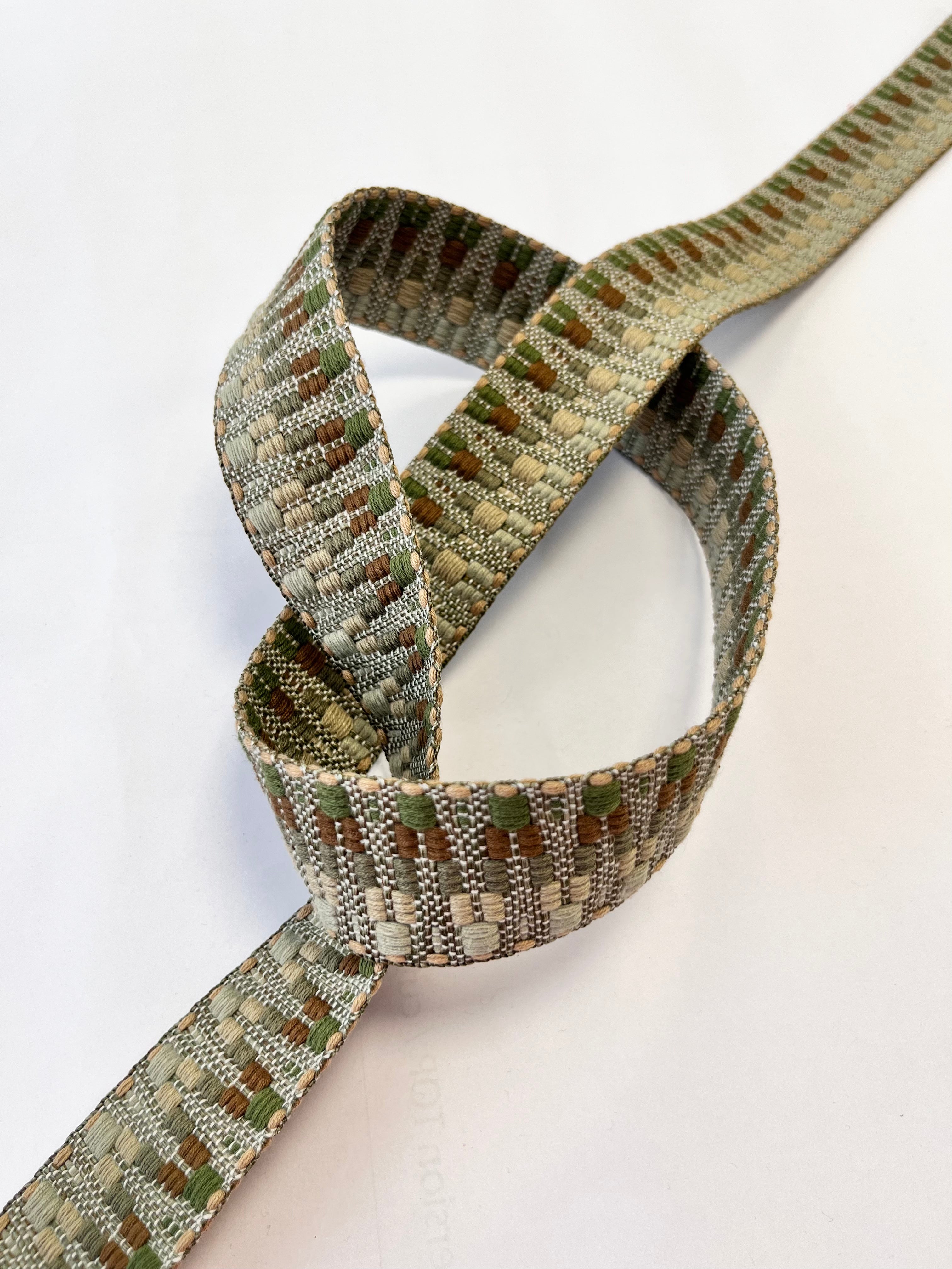 38mm Cotton Webbing | ZigZag | Green/Earth