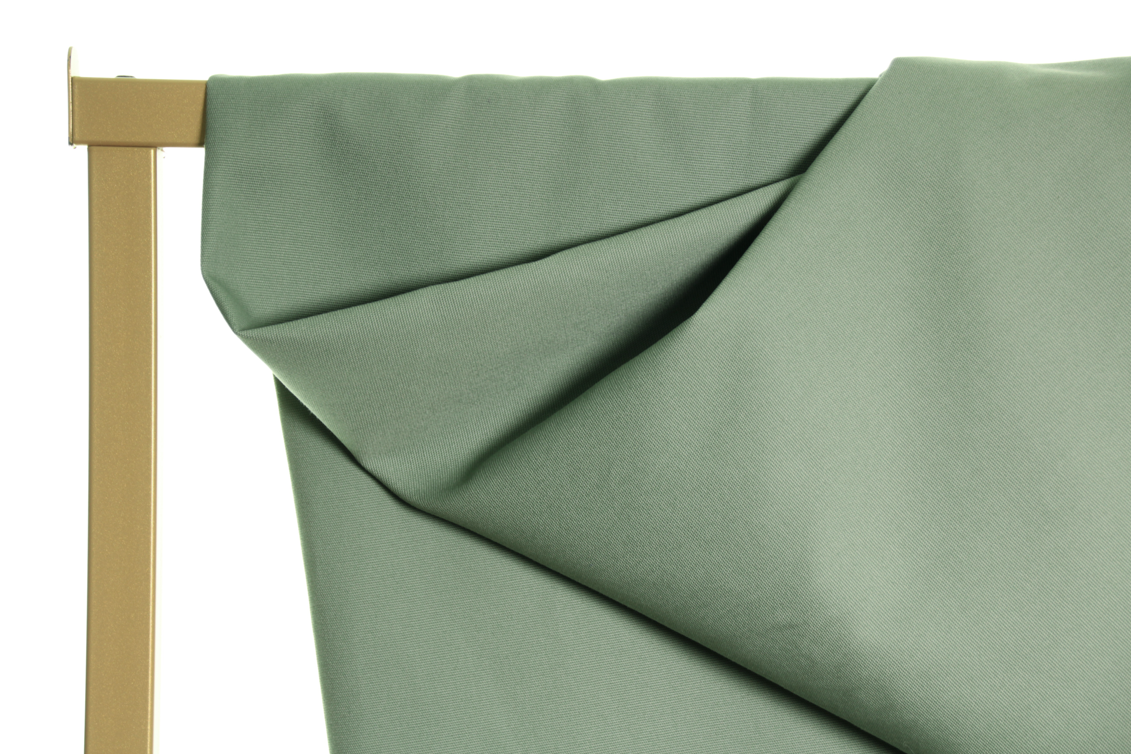 A matcha green organic cotton. This fabric is has a medium weight and is perfect for trousers, jackets, dungarees, ... and comes in more colours.