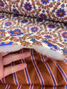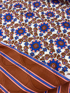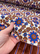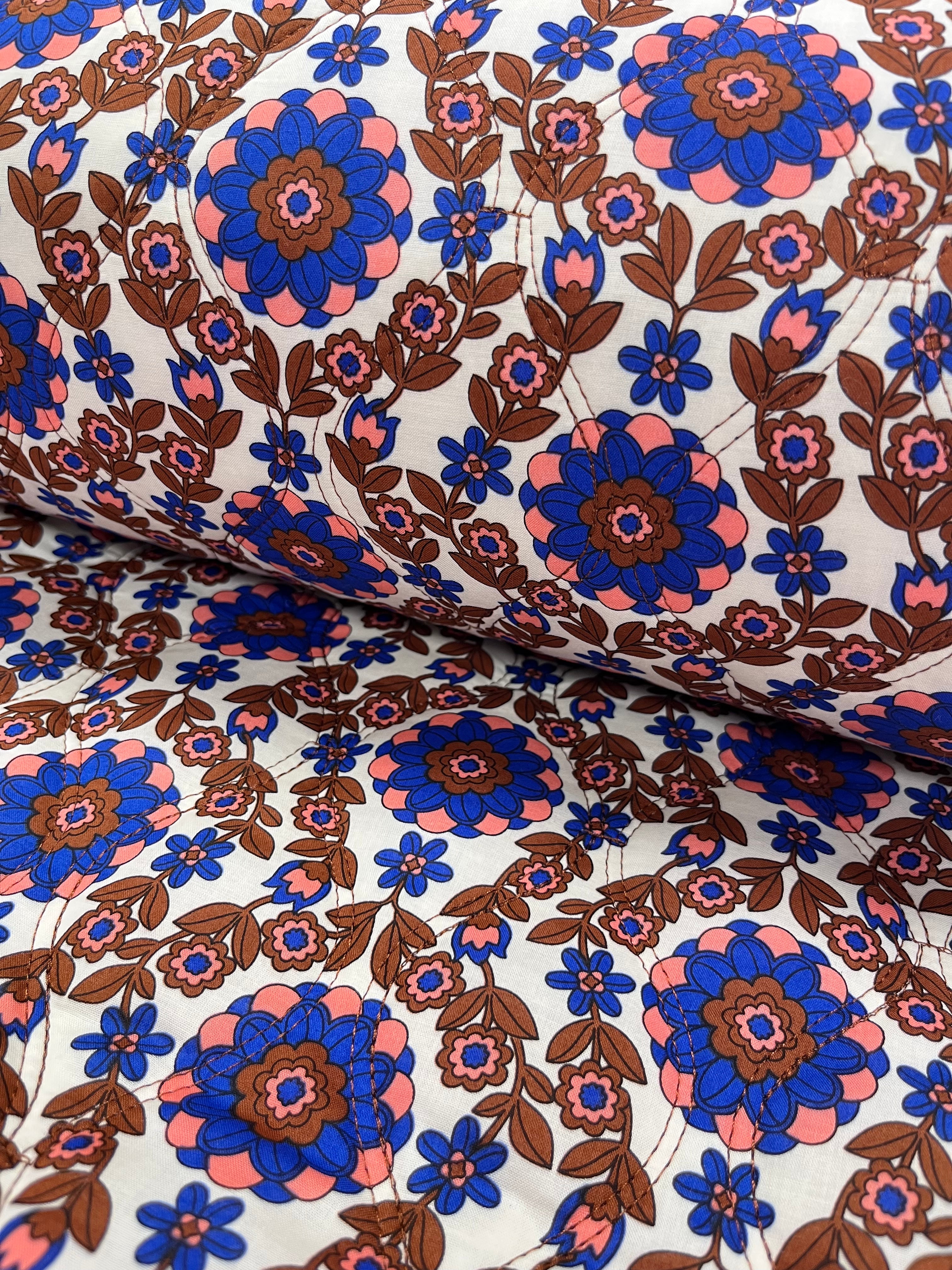 REMNANT | Retro Bloom | Double sided quilted cotton | Blue & Chestnut .9MTR