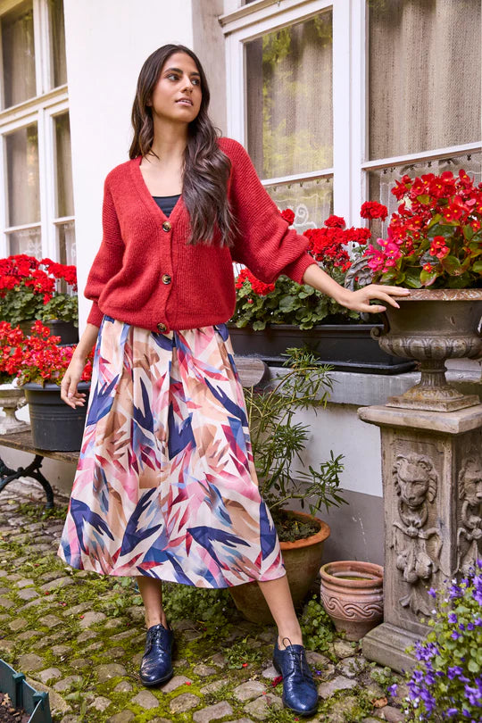 Atelier Jupe-Off-white viscose with coloured plant leaves