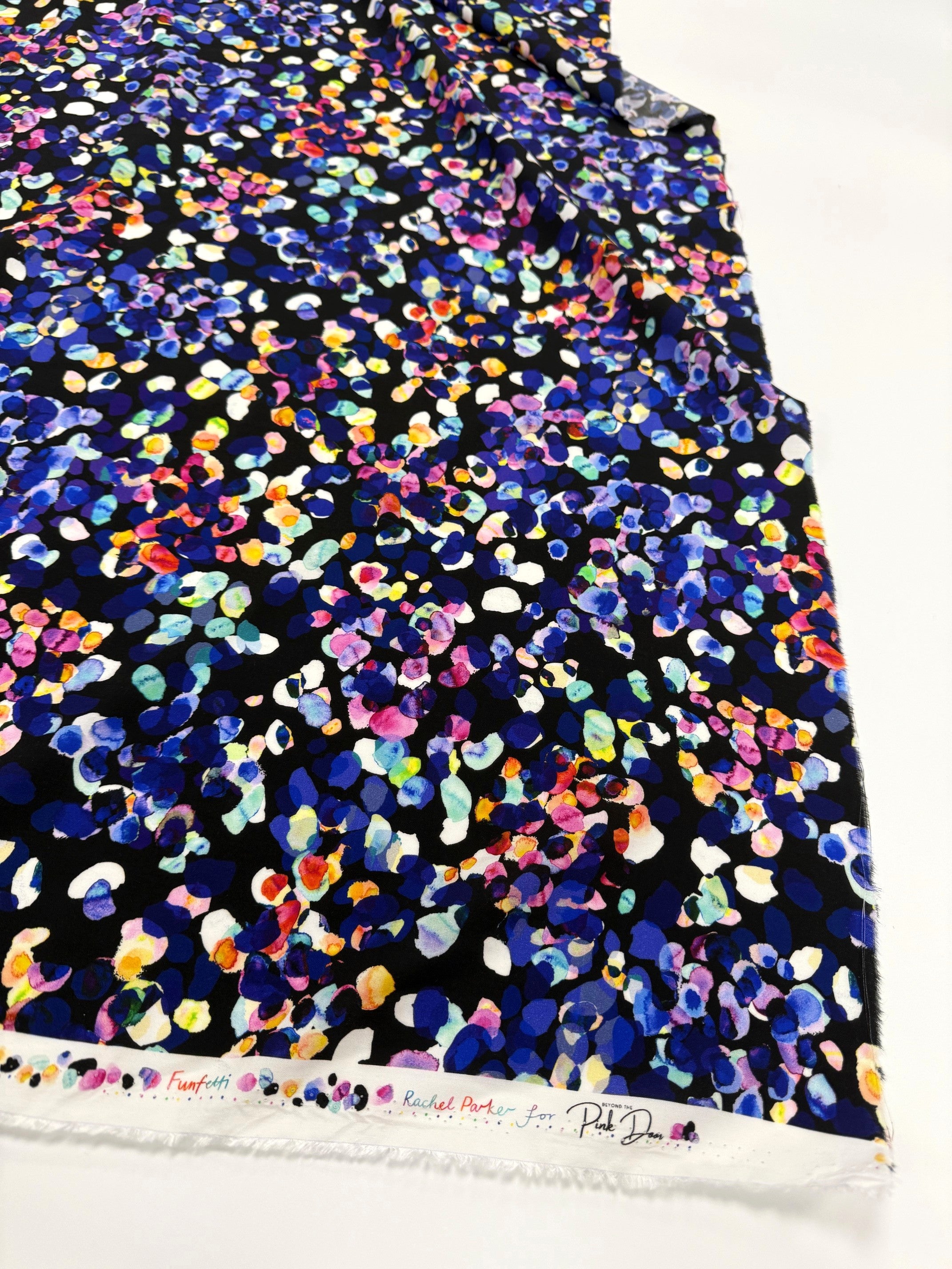It is a FUN print featuring a CONFETTI inspired print made up of gorgeous sunny colours. Hense how we came up with the name FUNFETTI.