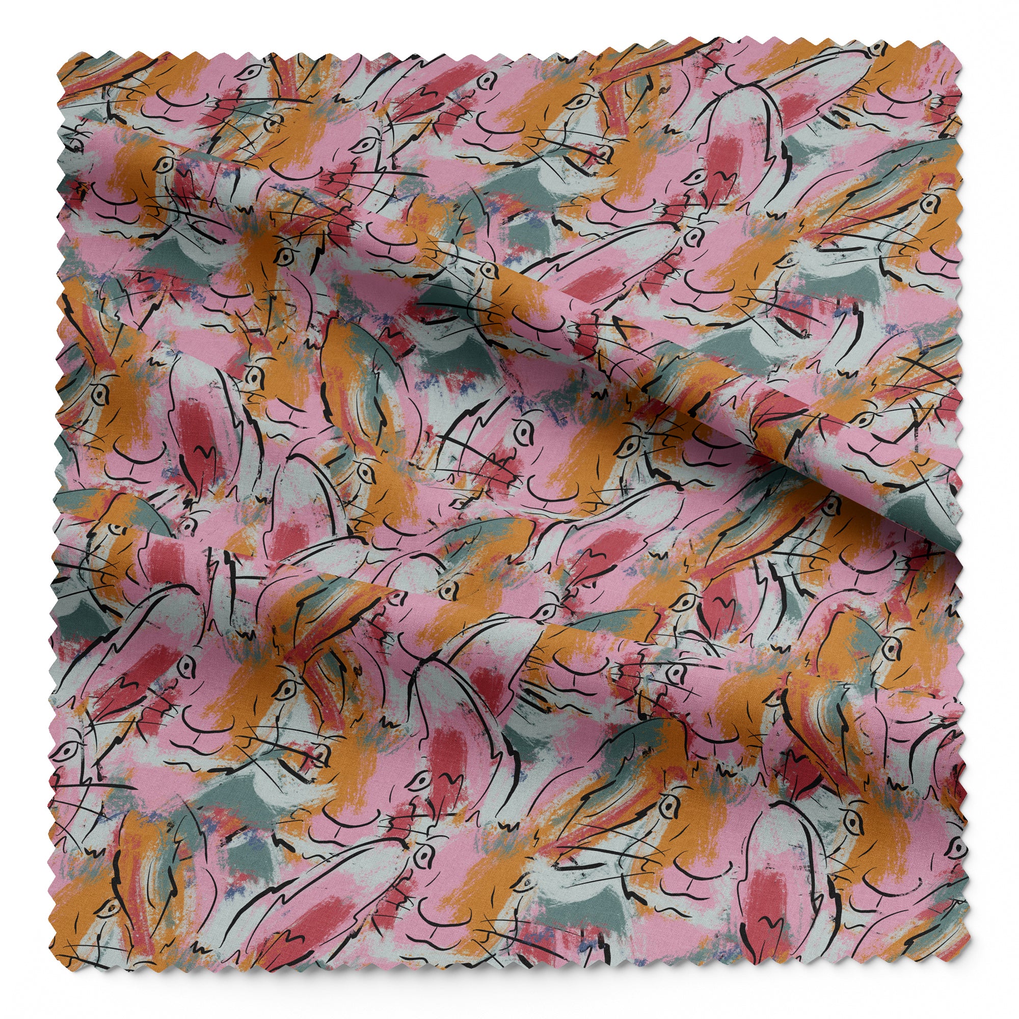 This busy design on 100% LENZING™ ECOVERO™ Viscose features an abundance of hares in an array of colours.