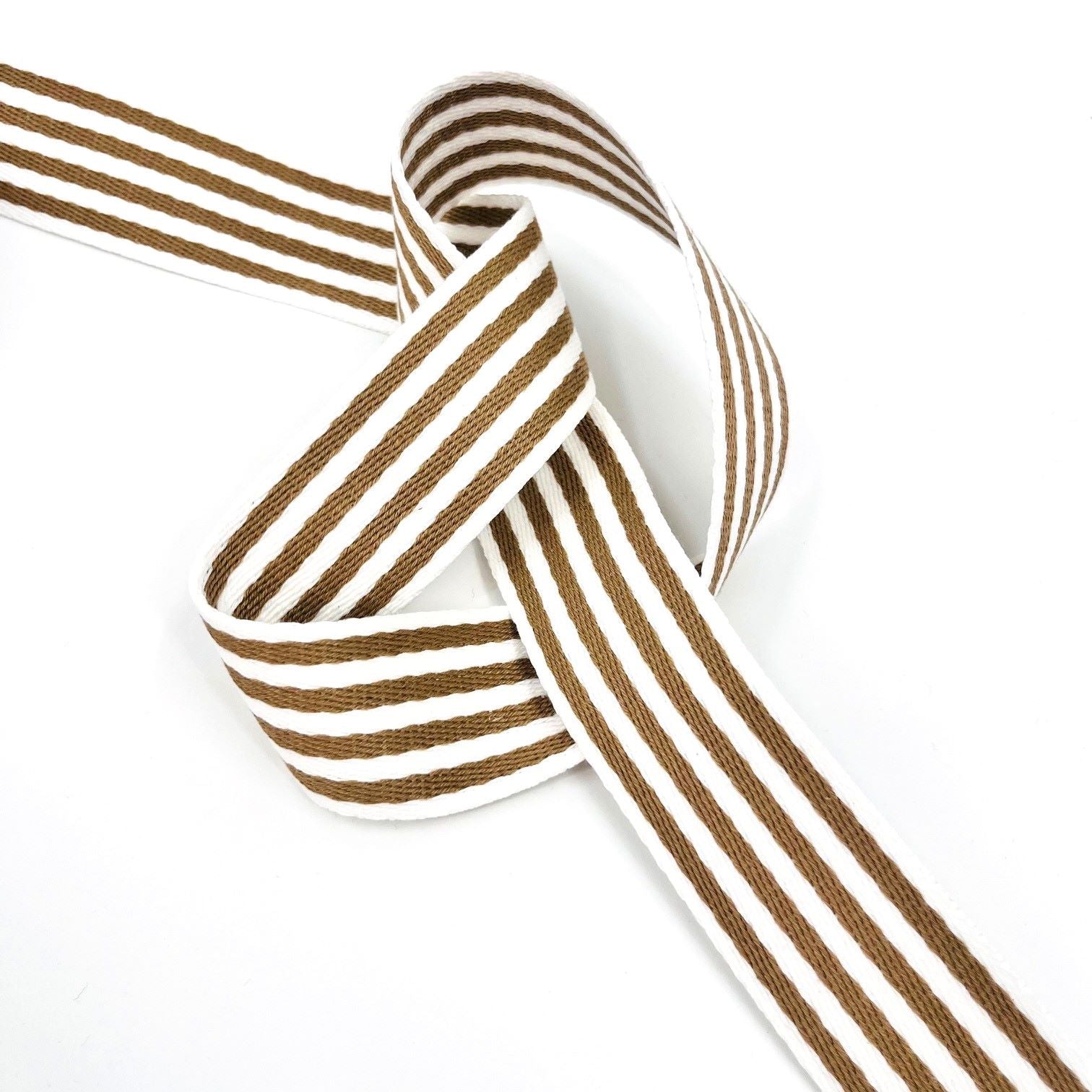 38mm Cotton Webbing | Stripes | Taupe/White
