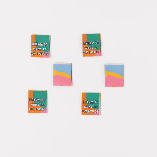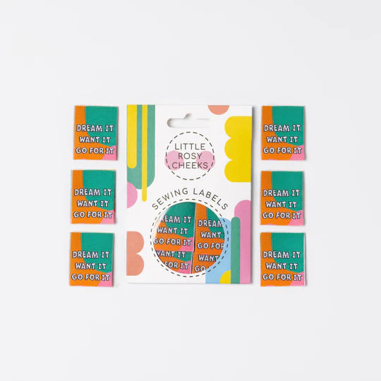 'GO FOR IT' - Little Rosy Cheeks UK Pack of 6 sewing labels
