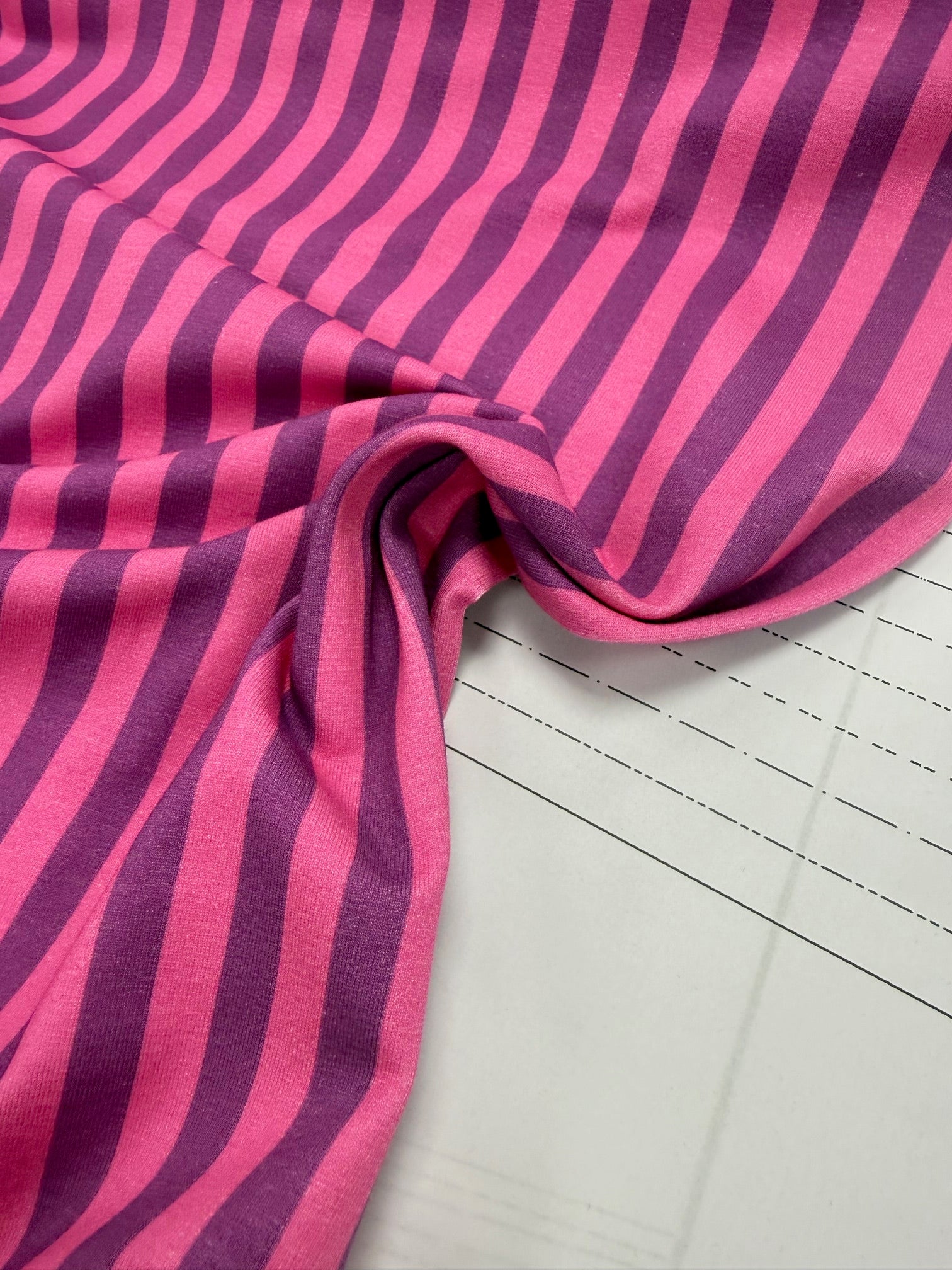 The contrast between the plum and pink stripes gives it a slightly moodier feel while still keeping that signature BTPD brightness. It’s perfect for garments that feel a little more elevated but still fun — think tops, dresses or stylish loungewear.