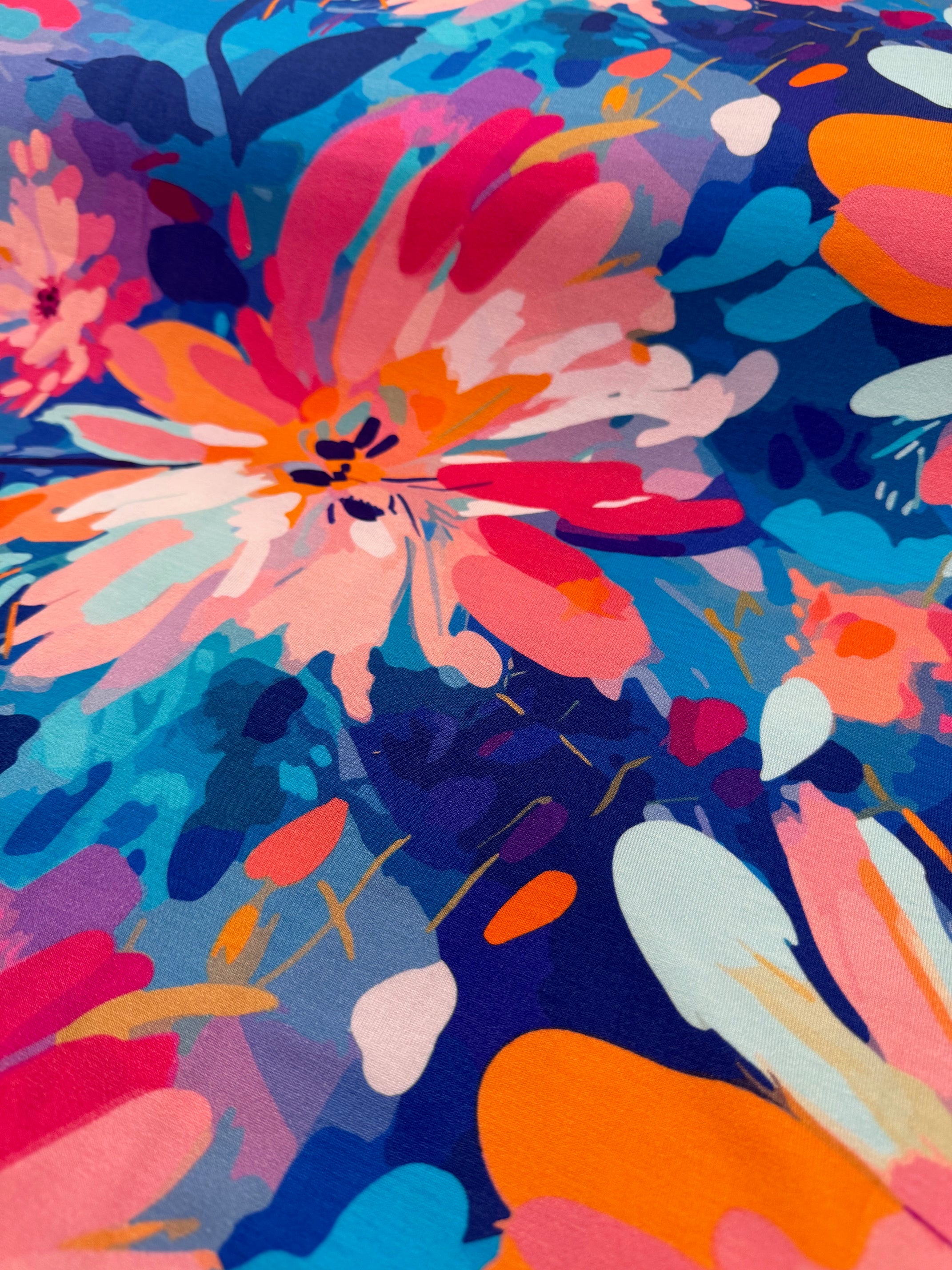 Brushstroke Bloom | Viscose Jersey | Tropical Pop