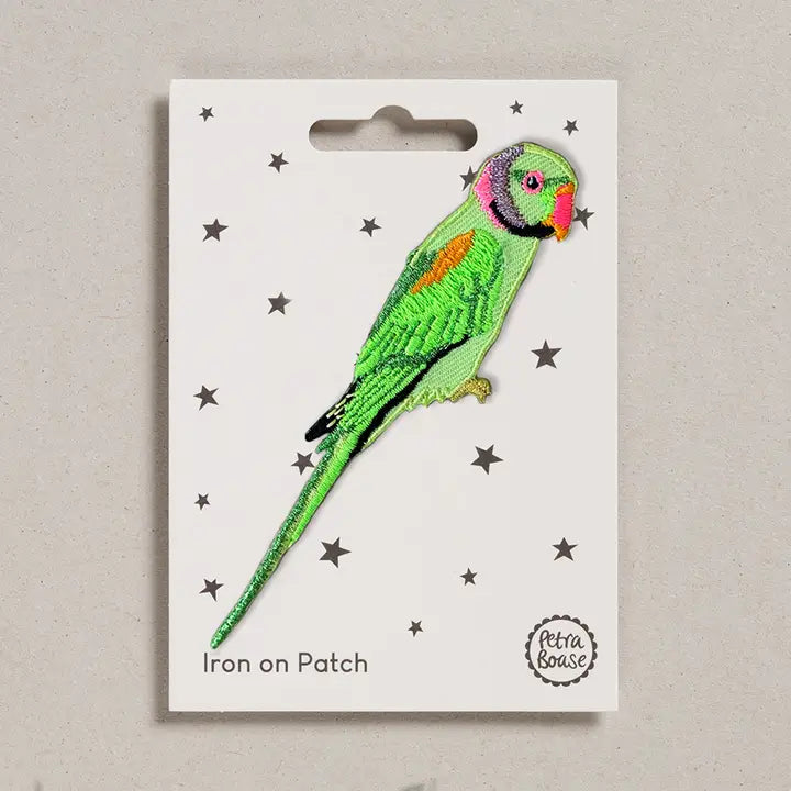 The patch has an iron-on backing so can be removed from the card and ironed straight on to the fabric.