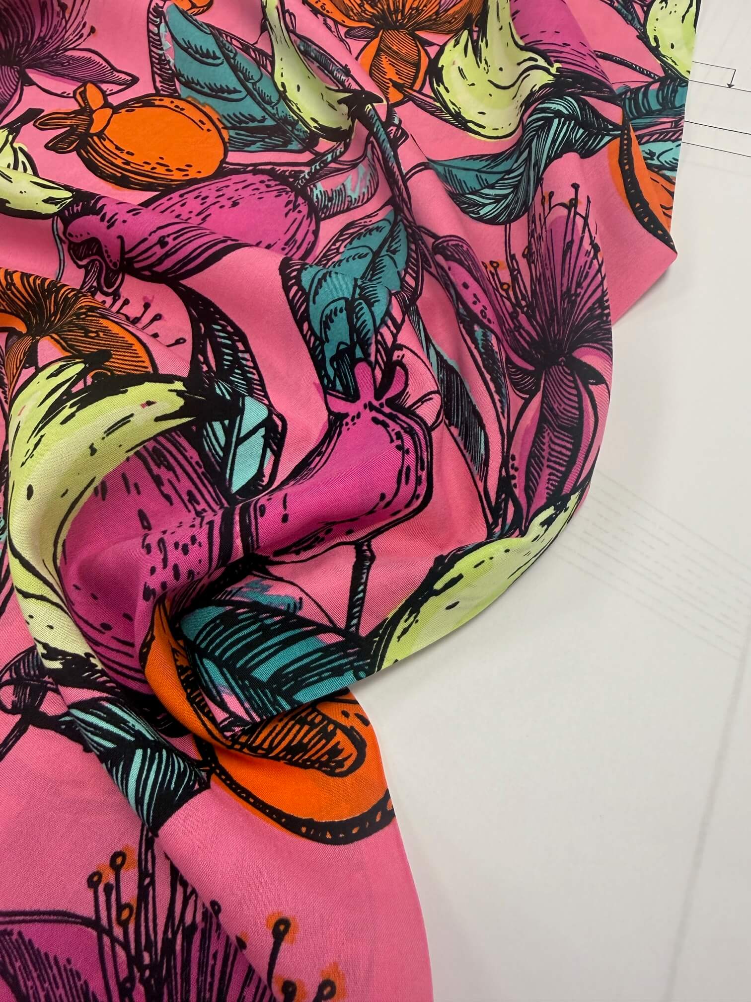 Tropical Orchard | Cotton Viscose Voile | Sunset Pink