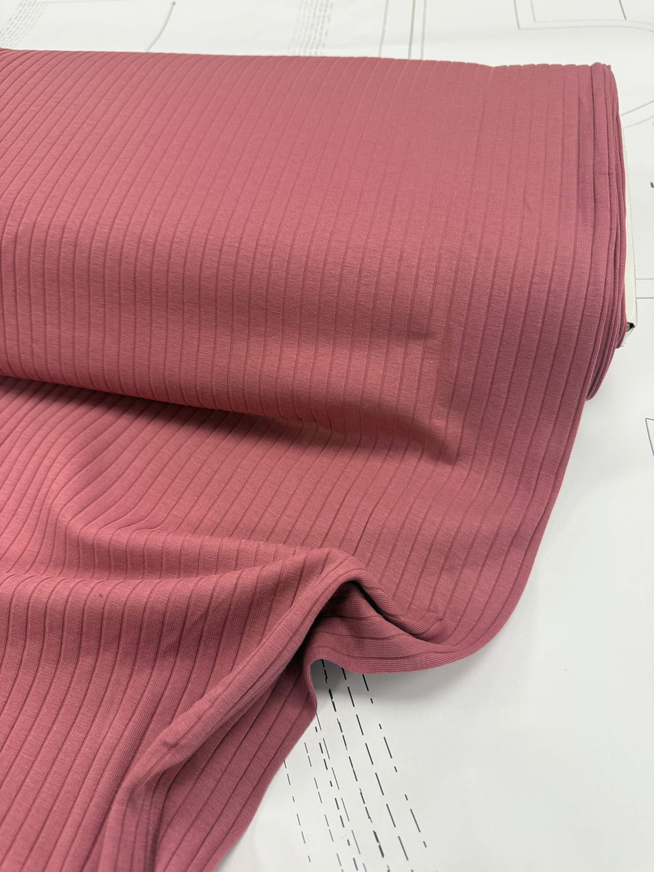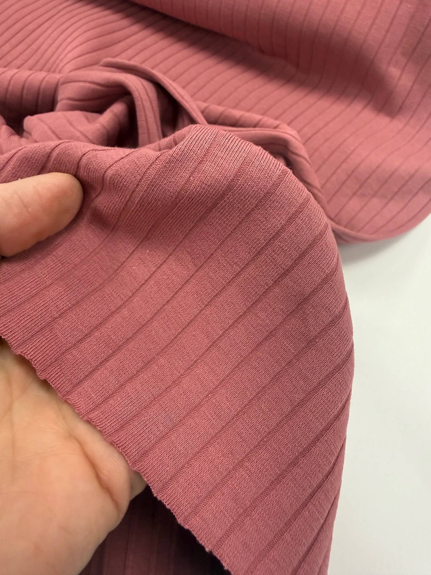 This cotton jersey rib fabric is one of those absolute wardrobe heroes. Featuring a bold rib structure of approximately 1 cm wide, it has a beautiful texture that feels just as good as it looks.