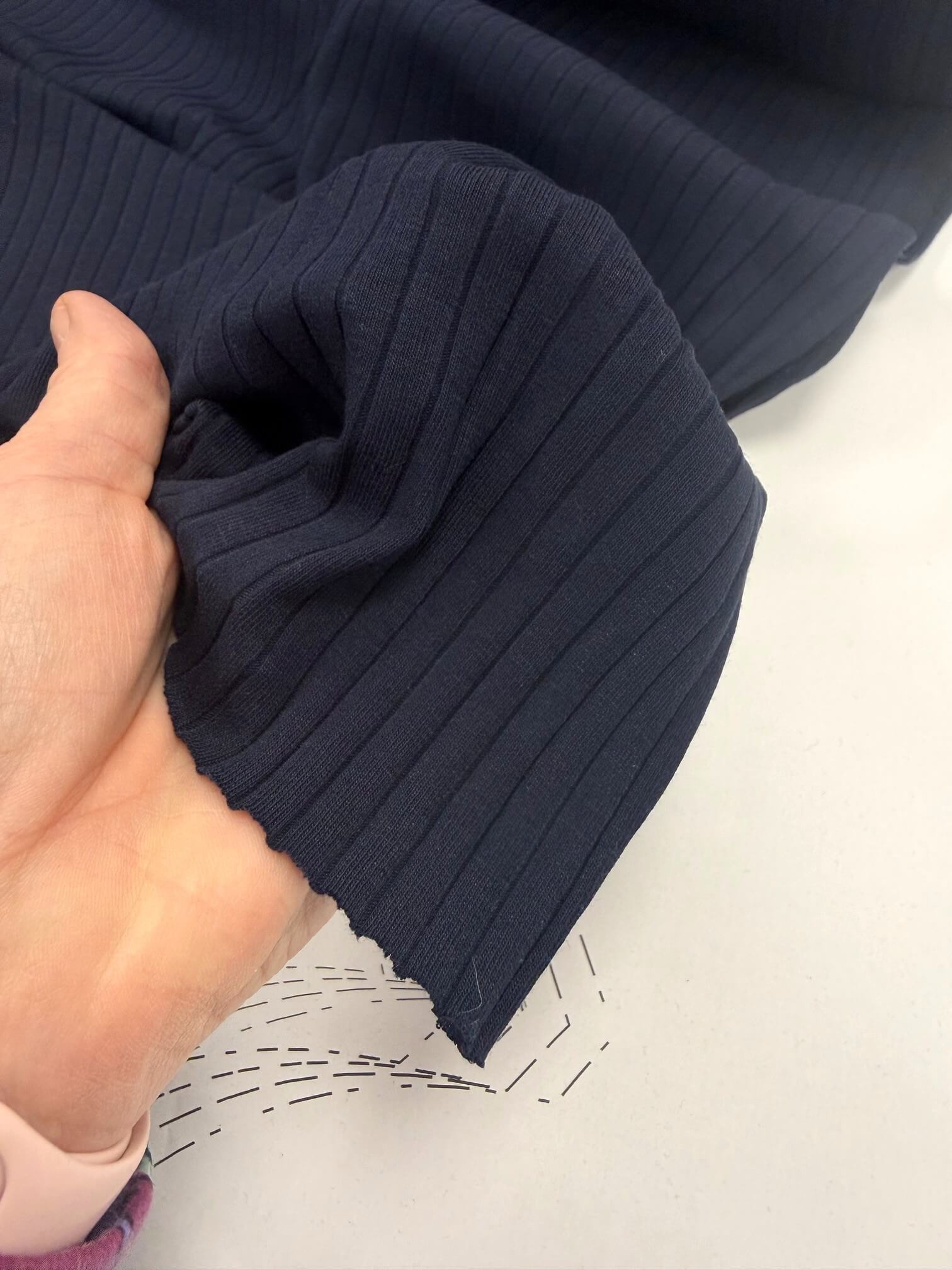 This cotton jersey rib fabric is one of those absolute wardrobe heroes. Featuring a bold rib structure of approximately 1 cm wide, it has a beautiful texture that feels just as good as it looks.