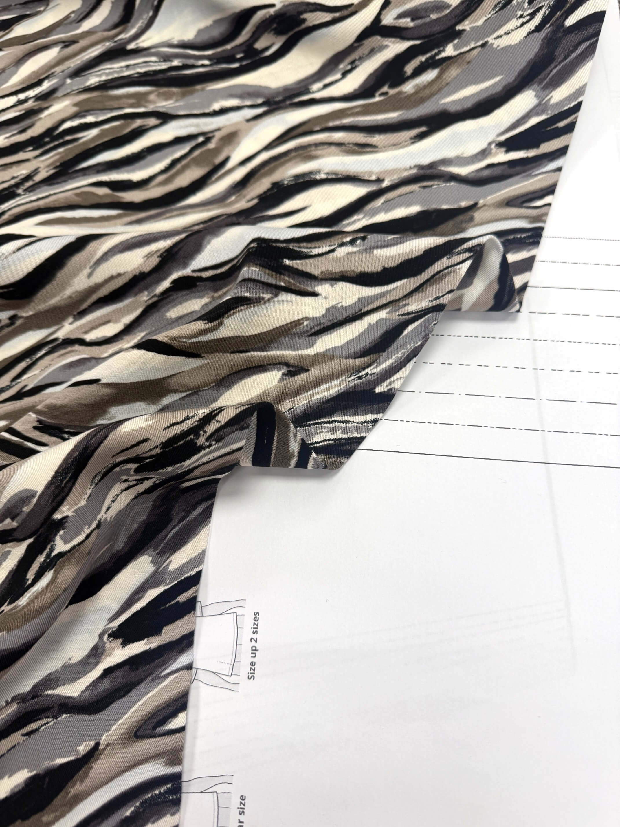 Printed on a beautifully soft viscose twill, this fabric has a gentle drape and a subtle diagonal texture that adds depth and movement to your finished garments. It skims the body rather than clinging, making it a dream for floaty dresses, blouses, skirts and relaxed trousers.
