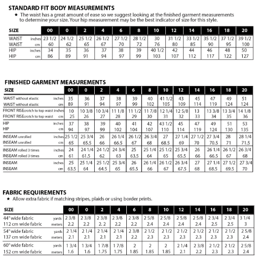 Sundries: Thread, 1 1/2/40mm wide elastic (length = waist measurement + 1/2"/13mm)