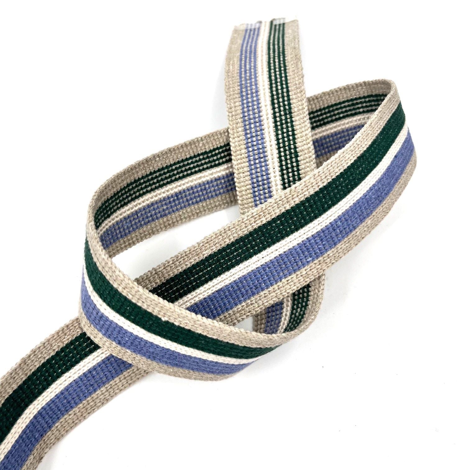 38mm Cotton Webbing | Stripes | Stone/Blue/Ecru/Green