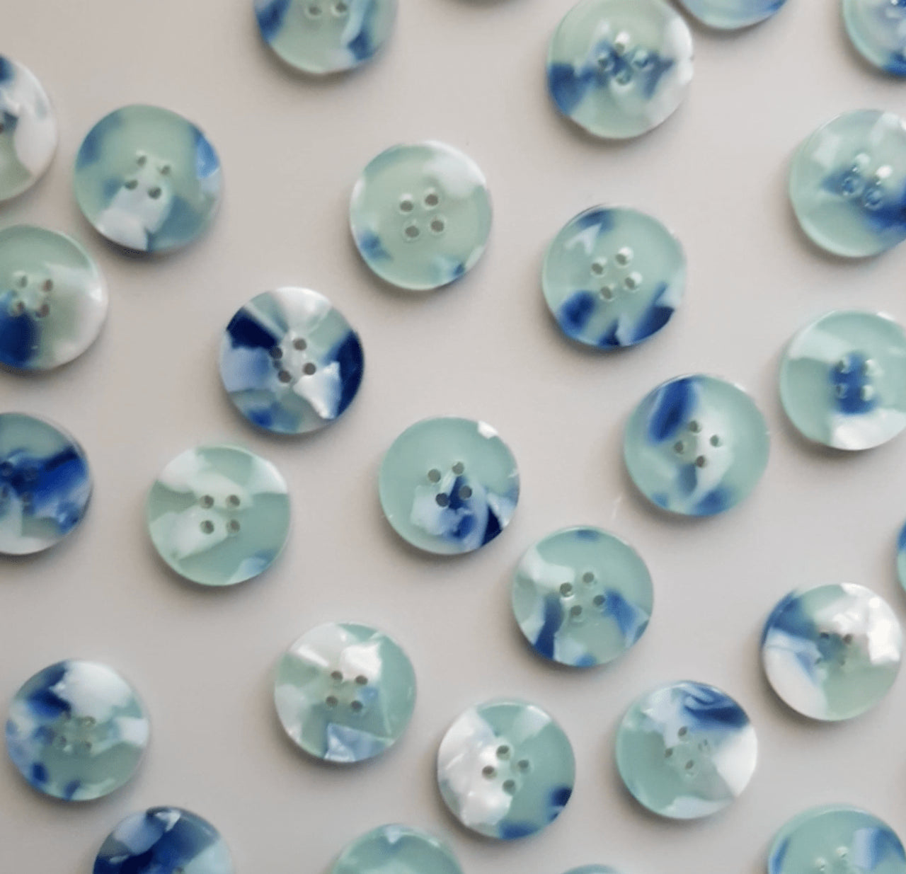 Made from bio resin these kinds of buttons are tough, glossy and have a smooth texture.
