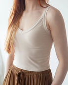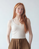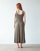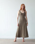 The Zoey pattern is a fitted knit tank top and dress. All views have a soft front V and low scooped back neckline. Armholes and necklines are finished with 5/8” wide bands. Views A and B are tank tops where View A has a cropped length hitting around the natural waist and View B ends around the hipline. View C is a fit and flare tank dress with a center front and back seam for extra shaping and the hem ending a few inches above the ankle.
