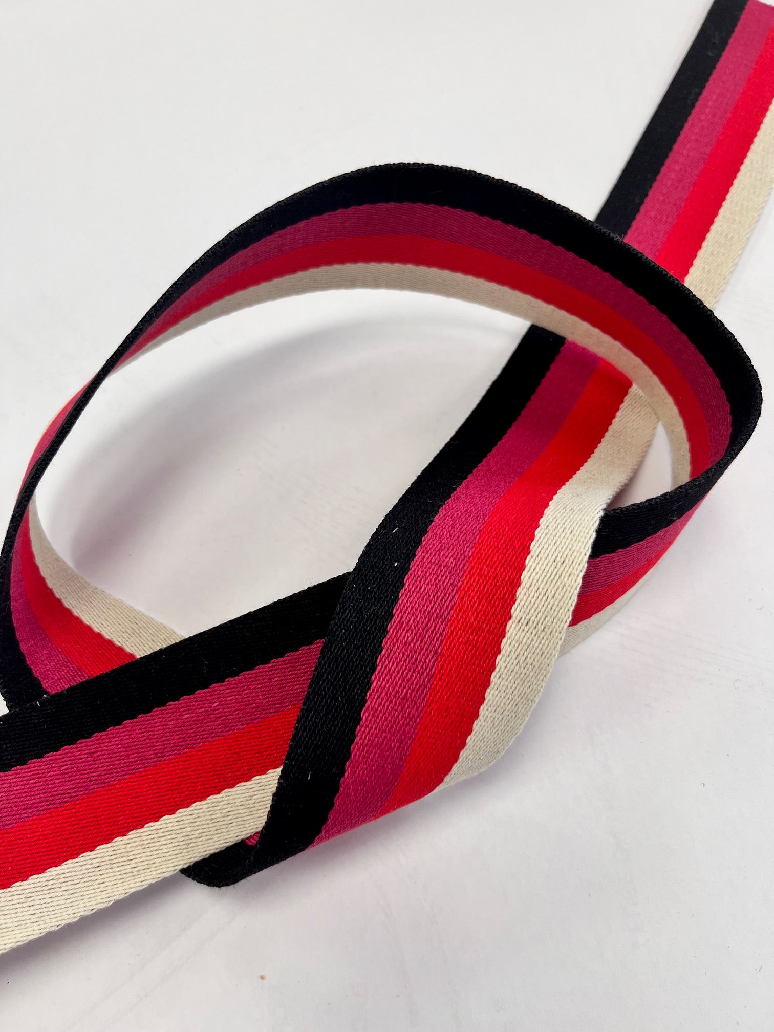 50mm Cotton Webbing | Stripe | Black/reds/natural