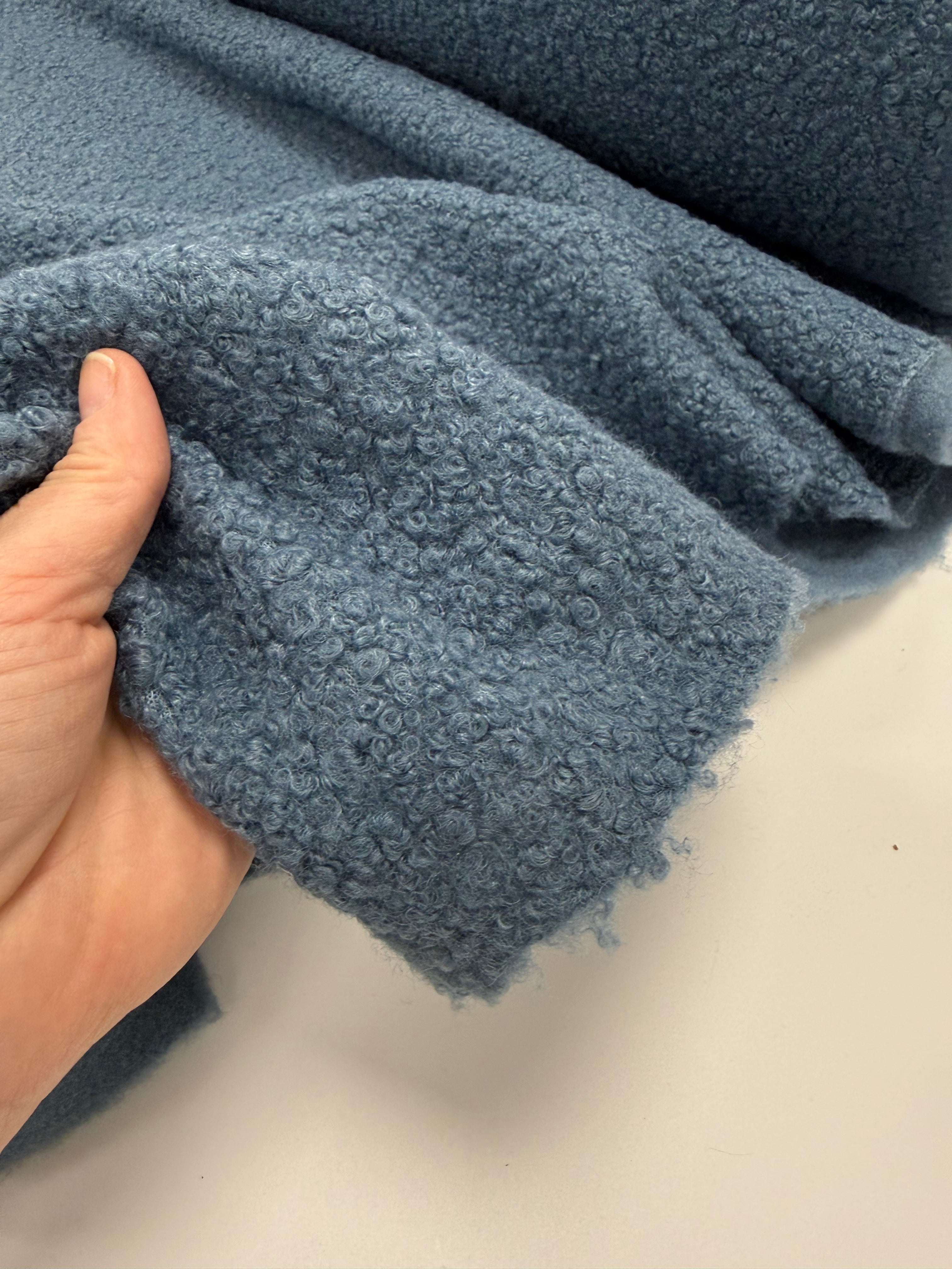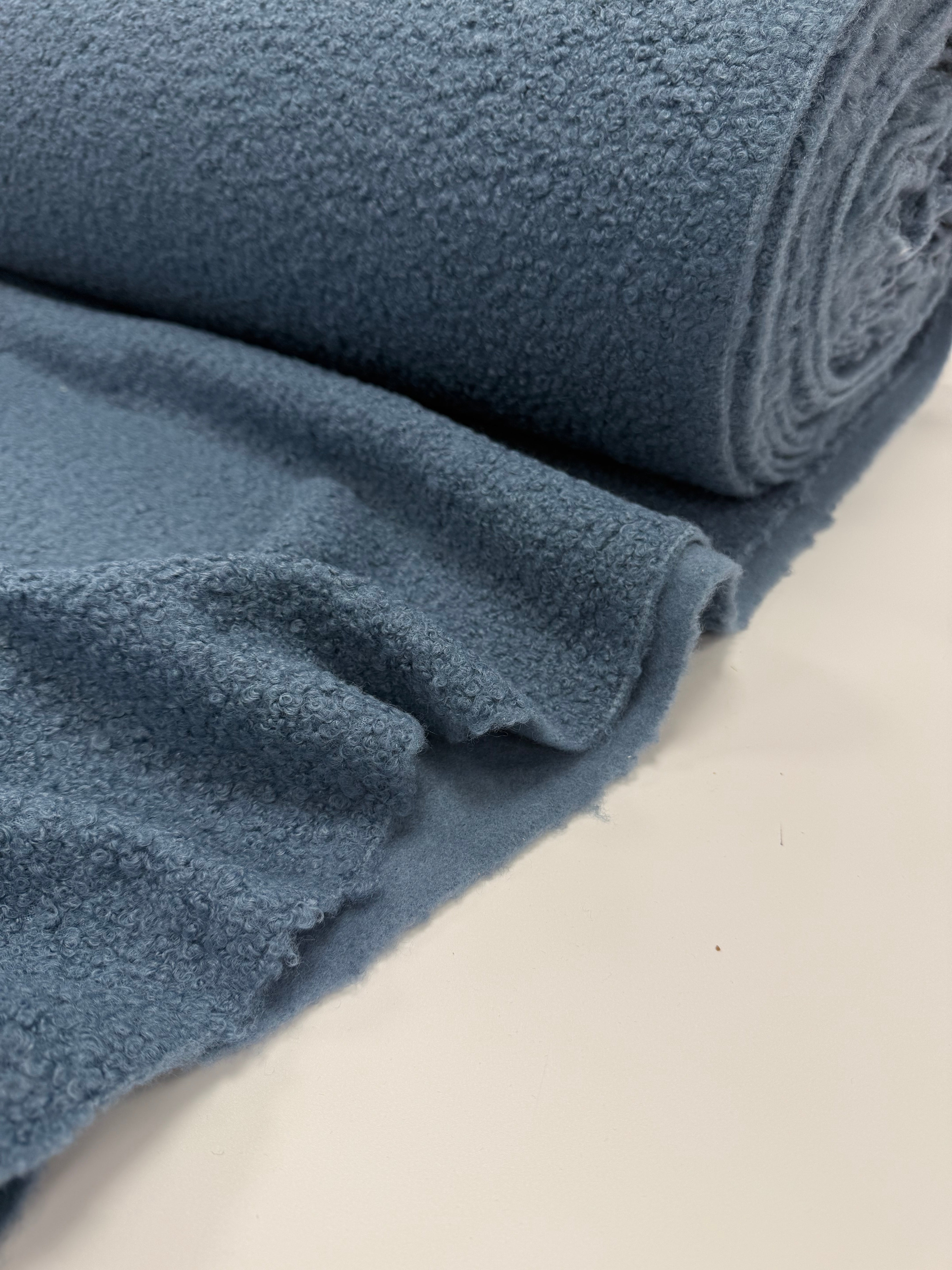 Soft and serene, Mist Blue captures the quiet calm of a winter morning. Its gentle steel-blue tone and subtle boucle texture create a fabric that feels both refined and comforting — a timeless shade for cool-weather creations.