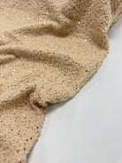 Add a touch of glamour to your handmade wardrobe with this beautifully textured sparkly knit fabric. Featuring a soft boucle-style surface scattered with subtle sequins, it catches the light beautifully while remaining comfortable and easy to wear.