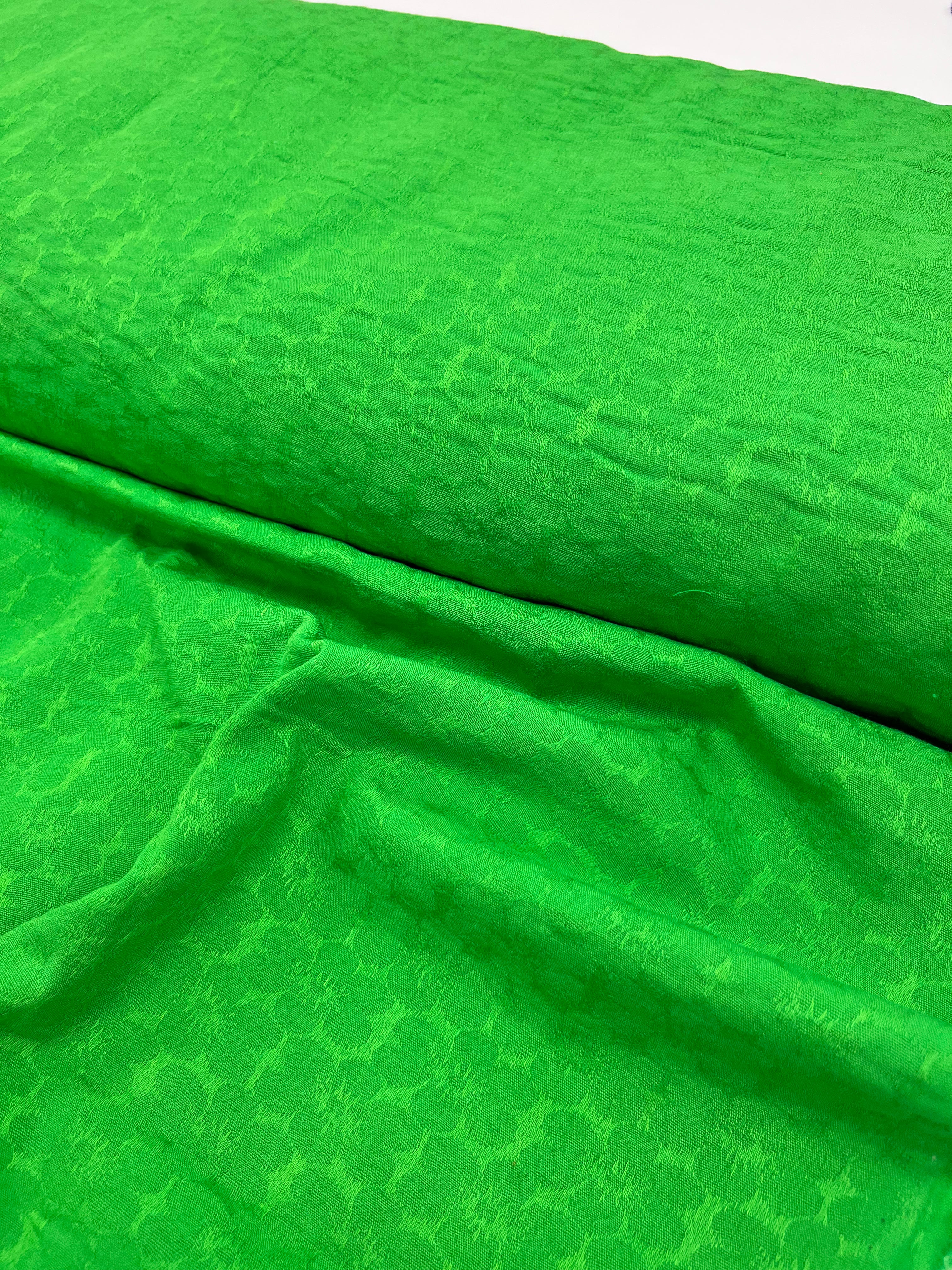 This is a lovely cotton jacquard fabric which has a subtle daisy print woven into it . It is a light/medium weight fabric with a nice drape. It would make gorgeous tops with statement sleeves or gathered skirts