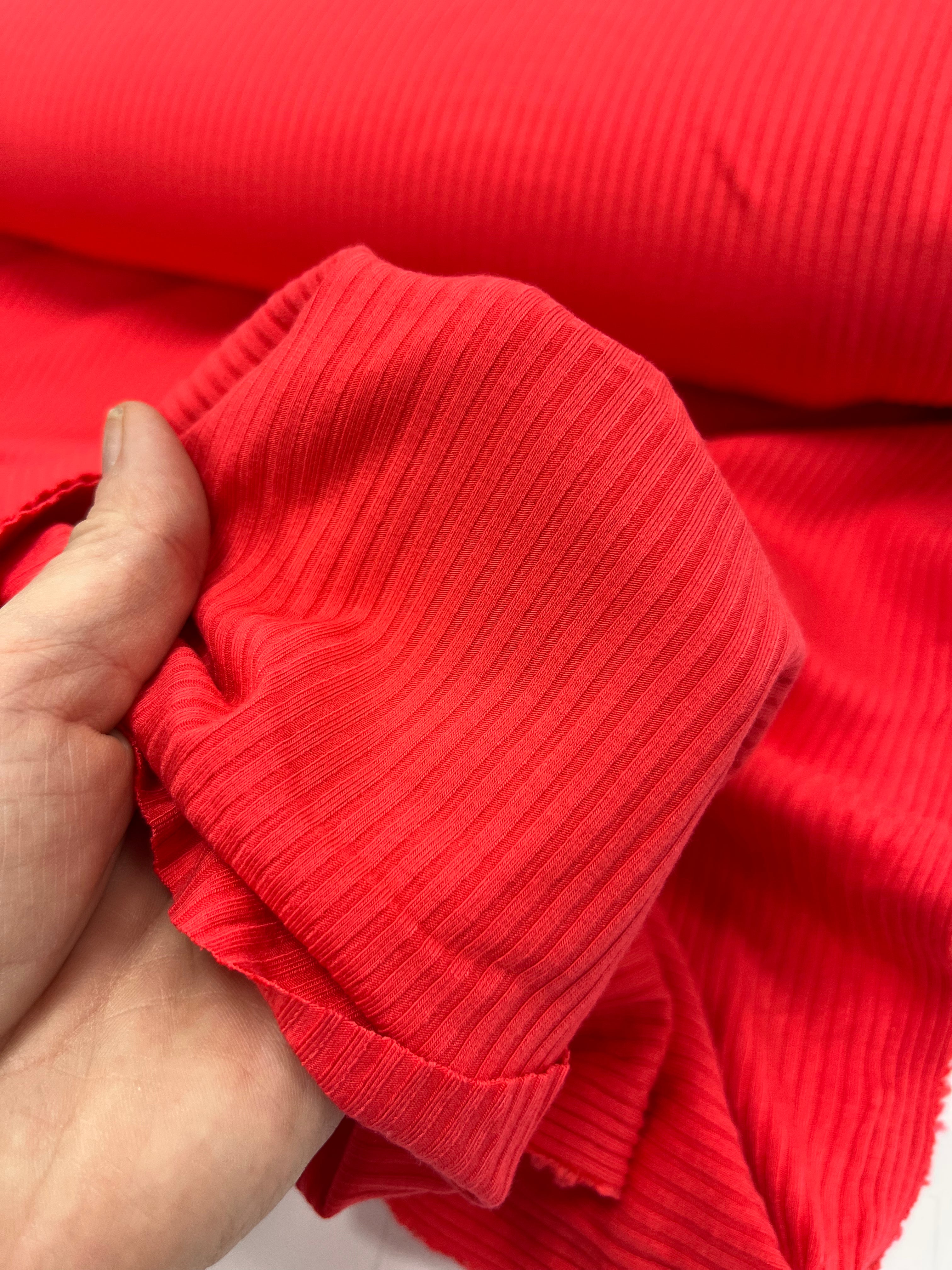 This ribbed bamboo jersey is luxury in a rib knit. It is beautifully soft and incredibly stretchy , fully opaque at maximum stretch. It would make the most gorgeous turtlenecks, year round cardigans or a figure hugging dress.