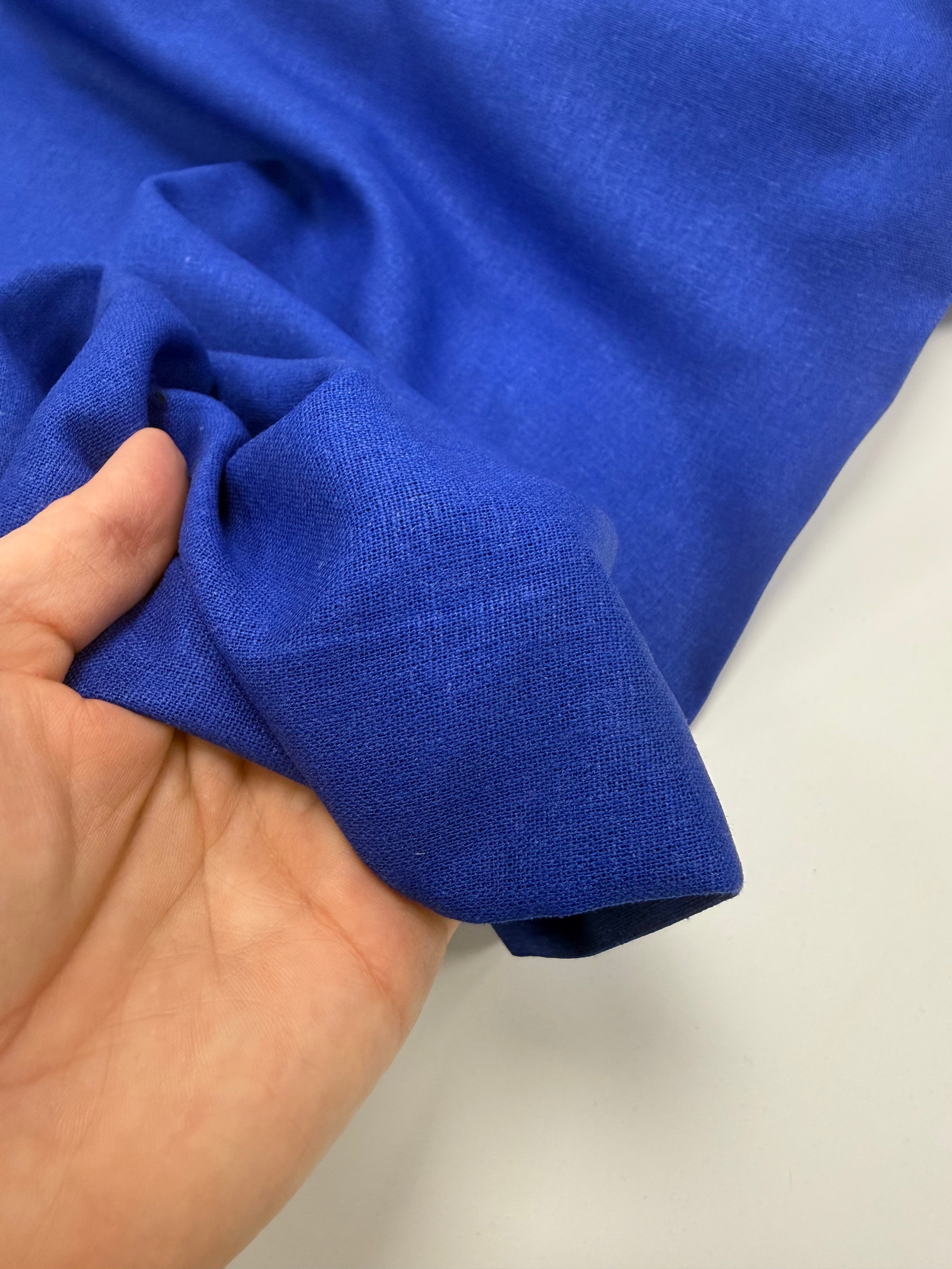 This stunning vivid sapphire linen–viscose blend brings together the natural character of linen with the fluid drape of viscose. The 55% linen / 45% viscose composition creates a beautifully balanced fabric that feels light and breathable yet has a graceful, flowing movement.