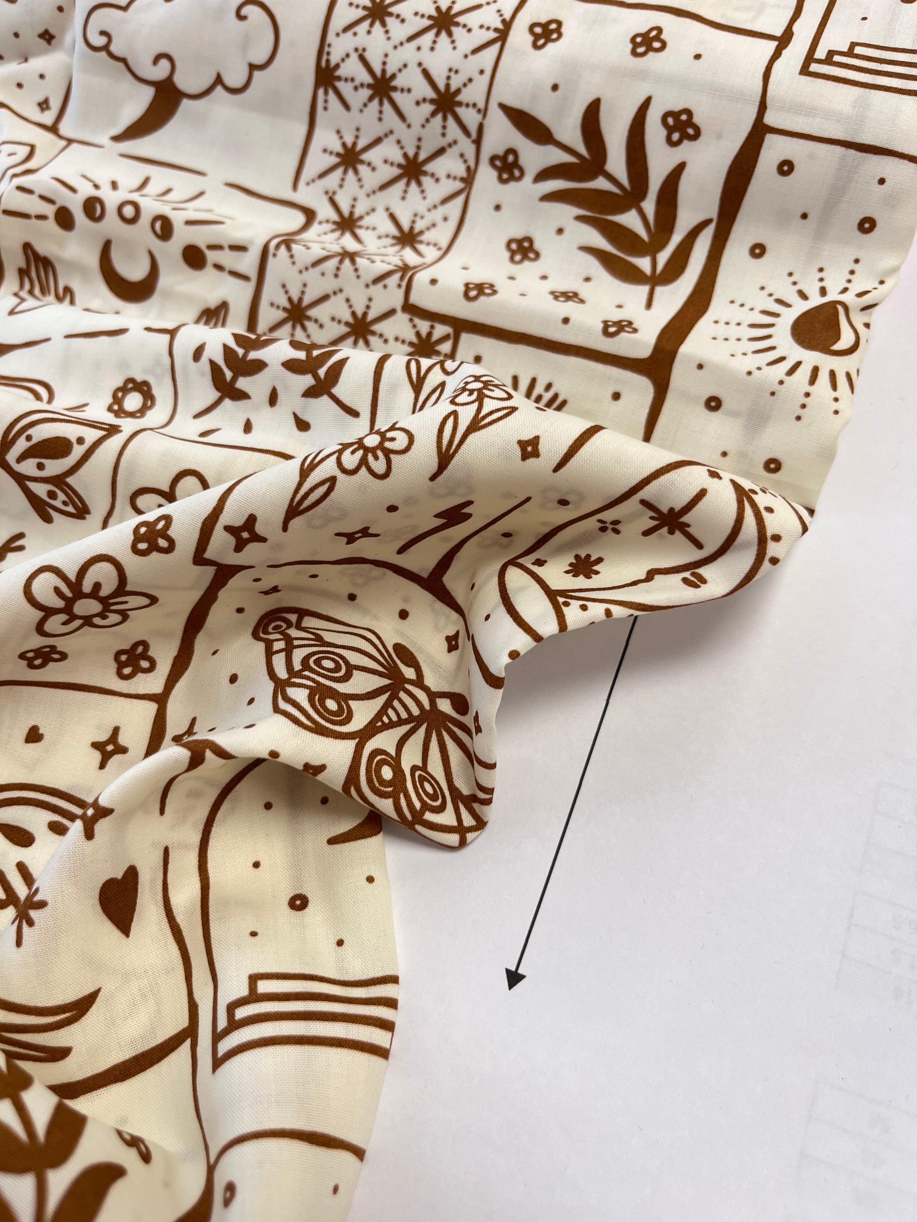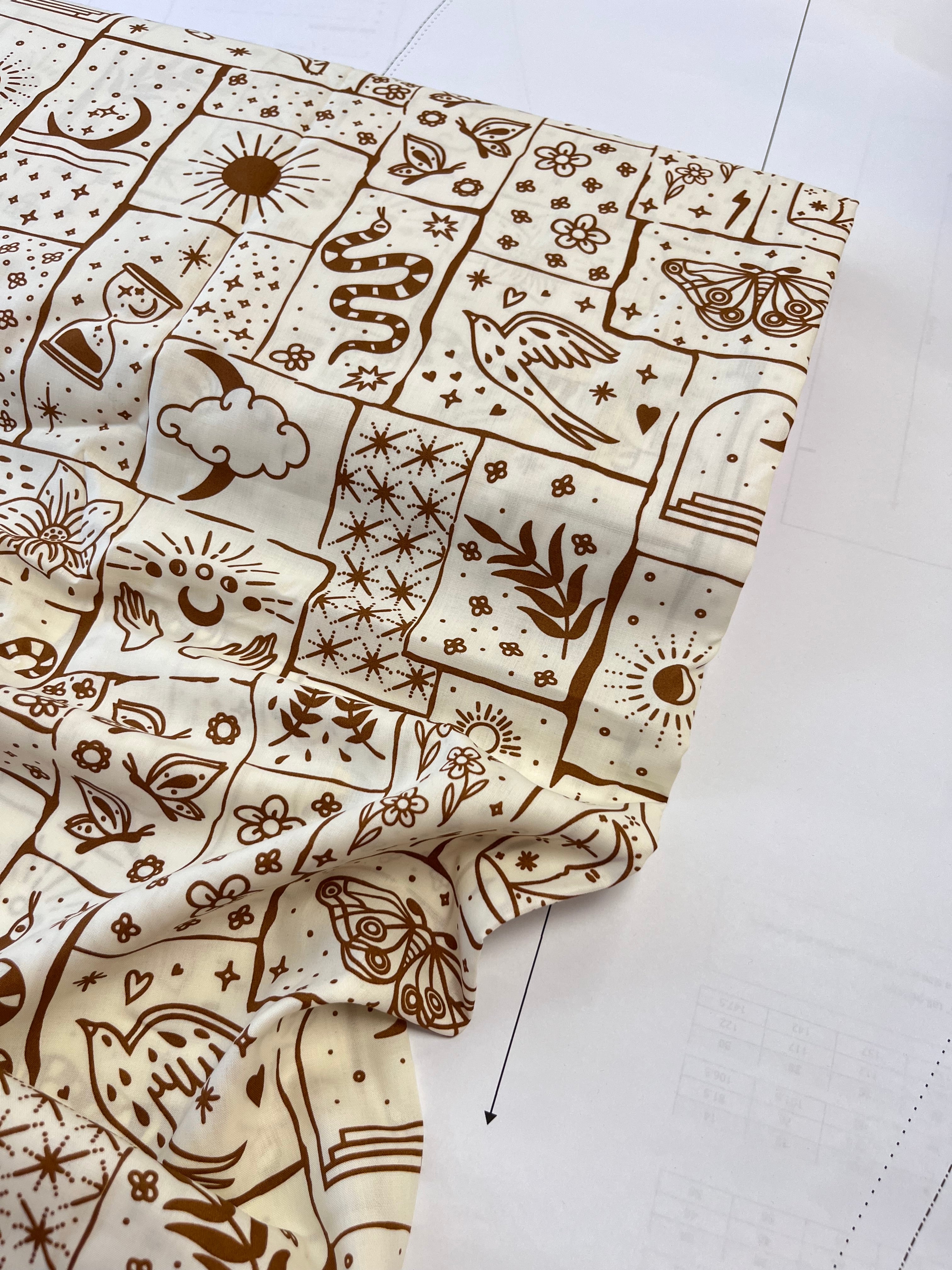 Celestial Botanica Earthly blooms meet heavenly bodies in Celestial Botanica. With delicate botanicals, radiant suns, and lunar charms, this fabric bridges the natural and the divine—perfect for creations that feel timeless and ethereal.