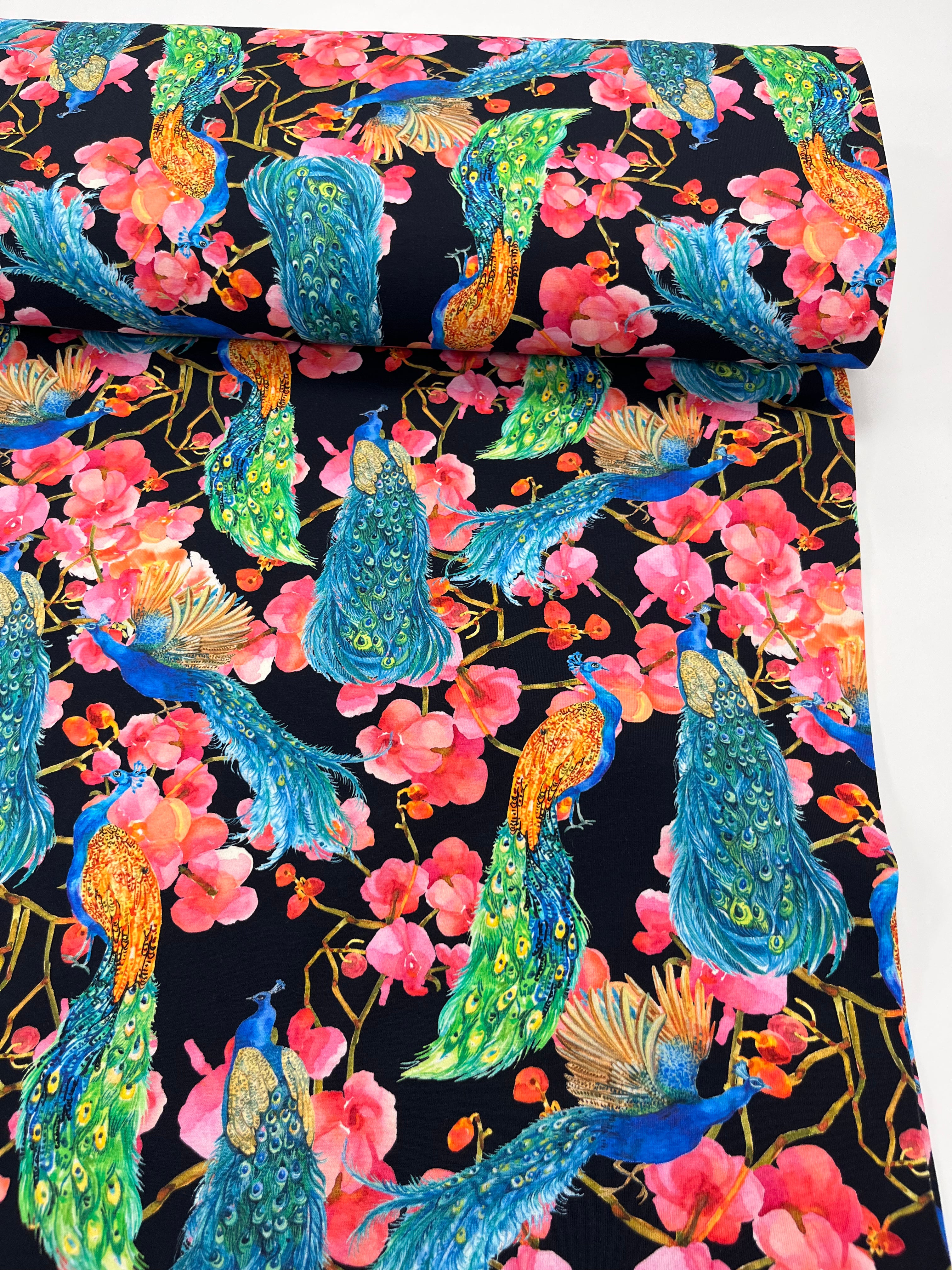 REMNANT | Peacock Floral | Cotton Jersey .7MTR