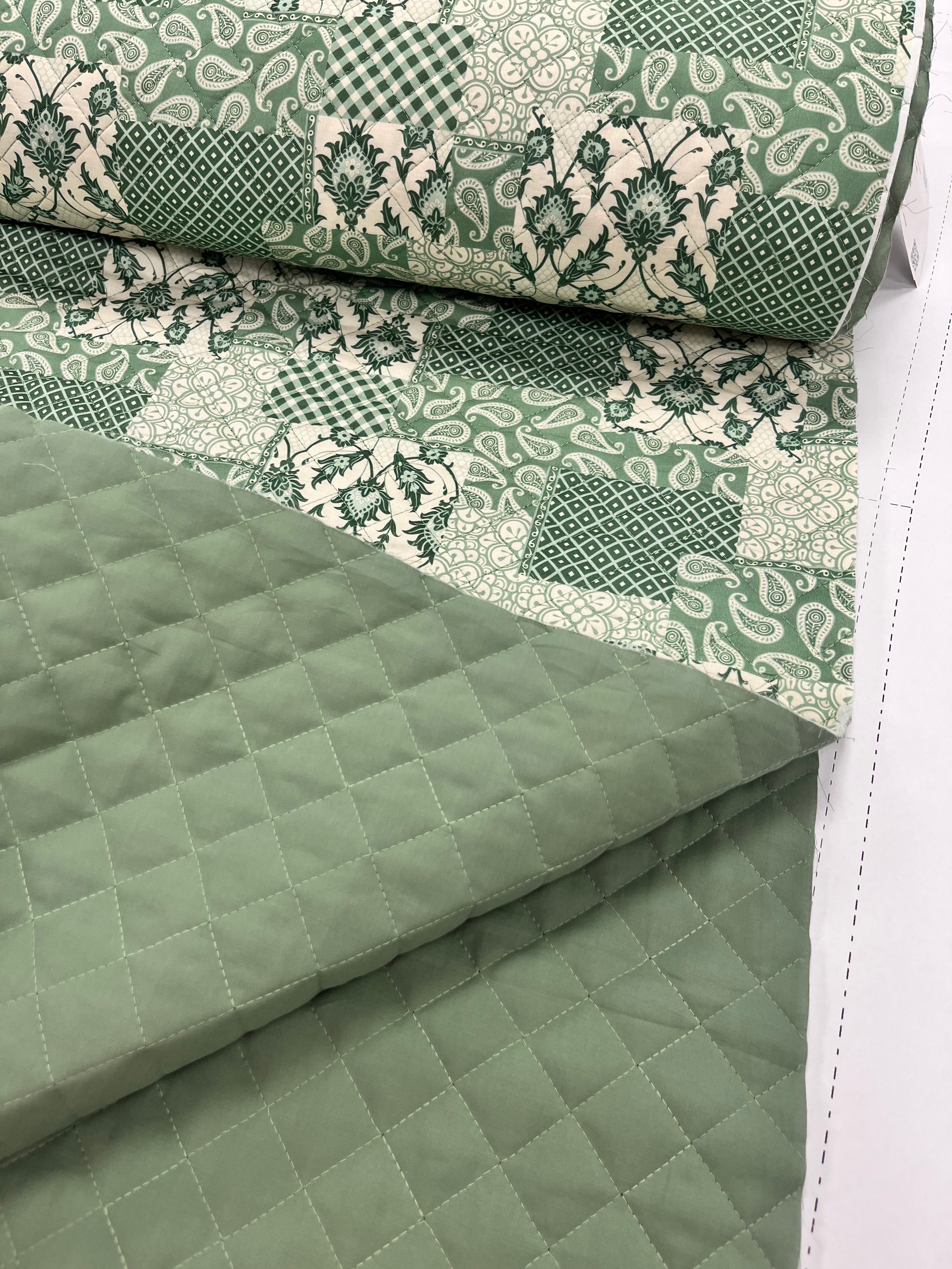 REMNANT | Quilted patchwork Cotton | Sage .6MTR