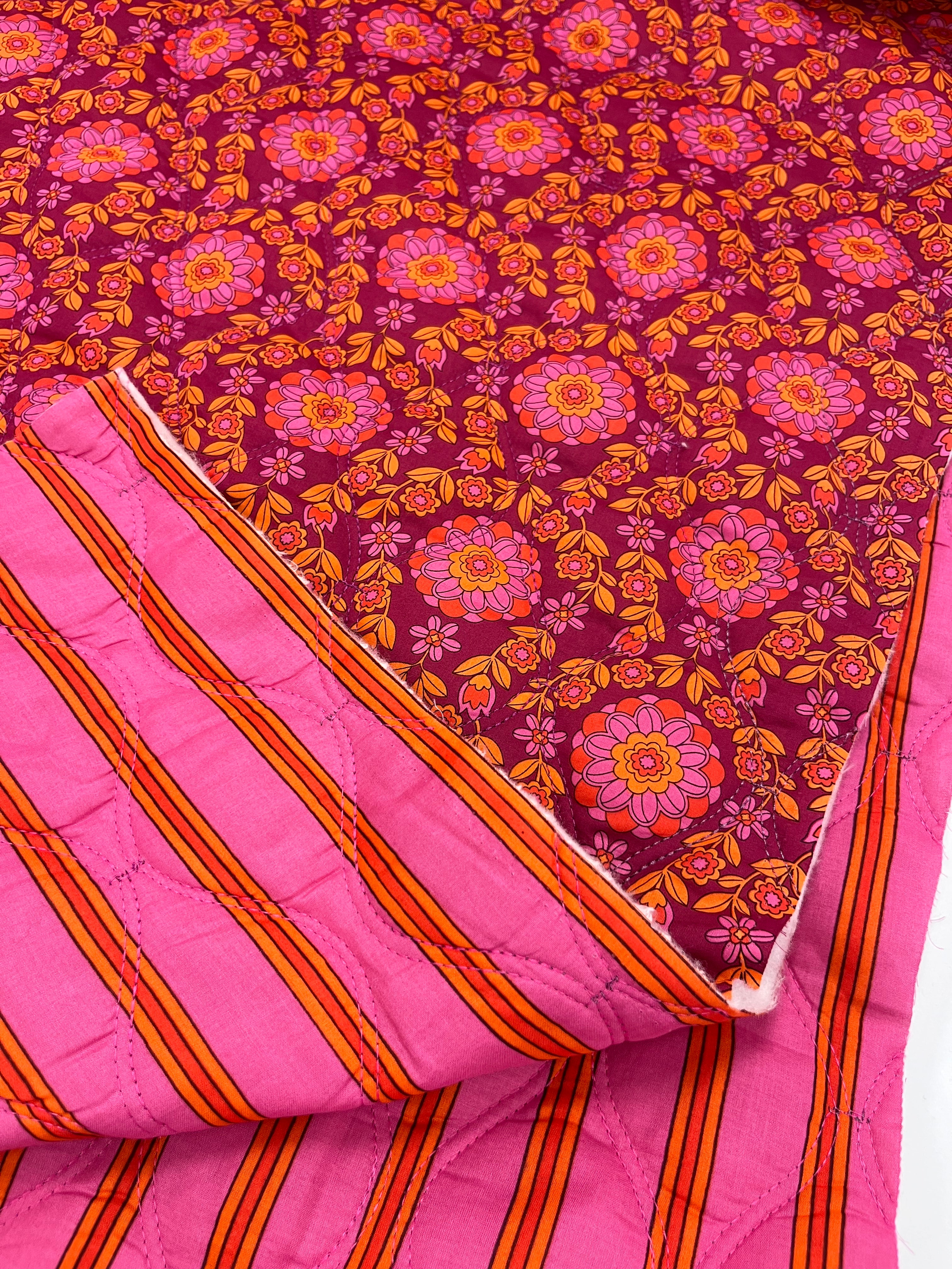 Retro Bloom | Double sided quilted cotton | Magenta & Tangerine