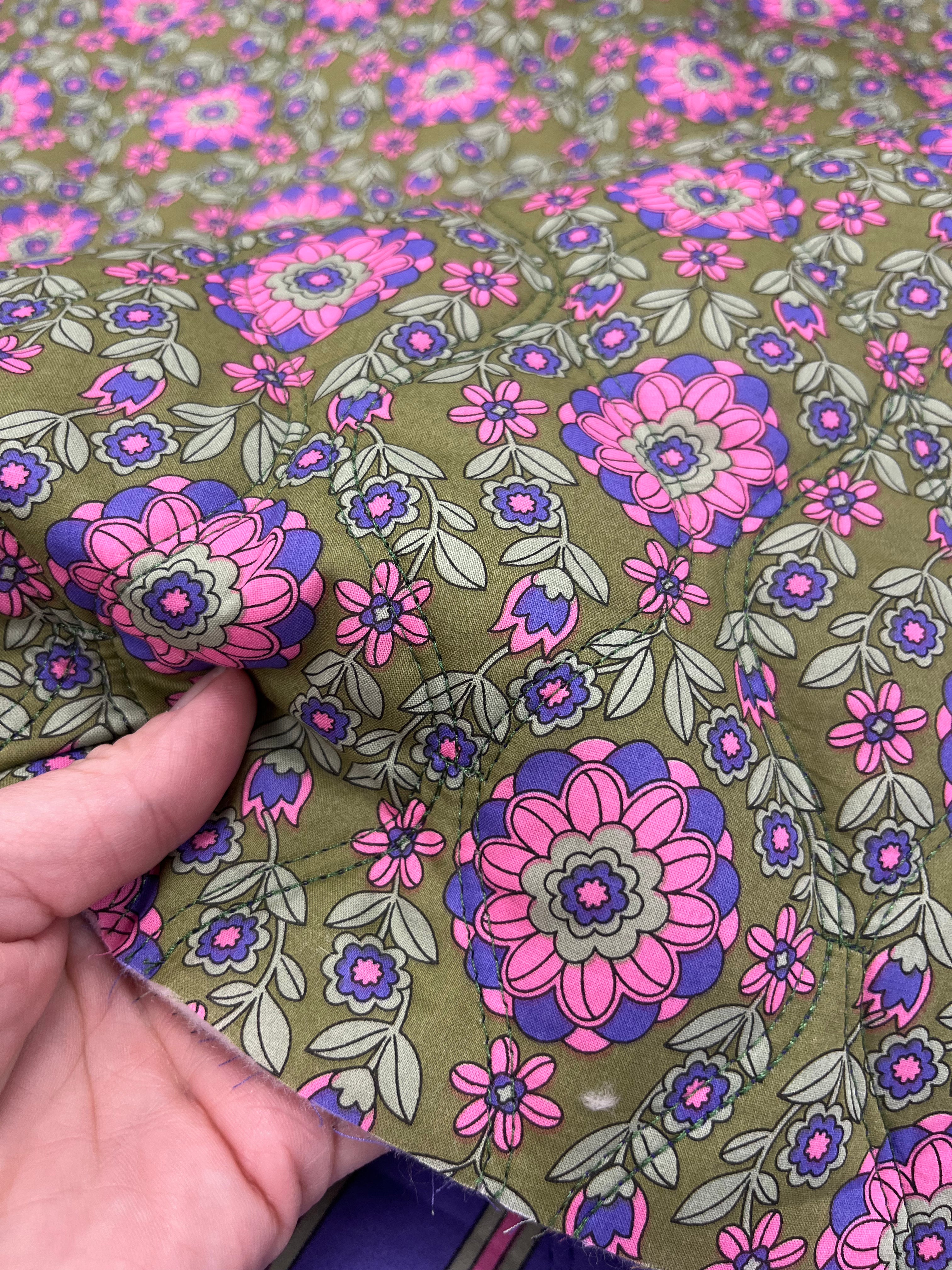 Retro Bloom | Double sided quilted cotton | Olive & Violet