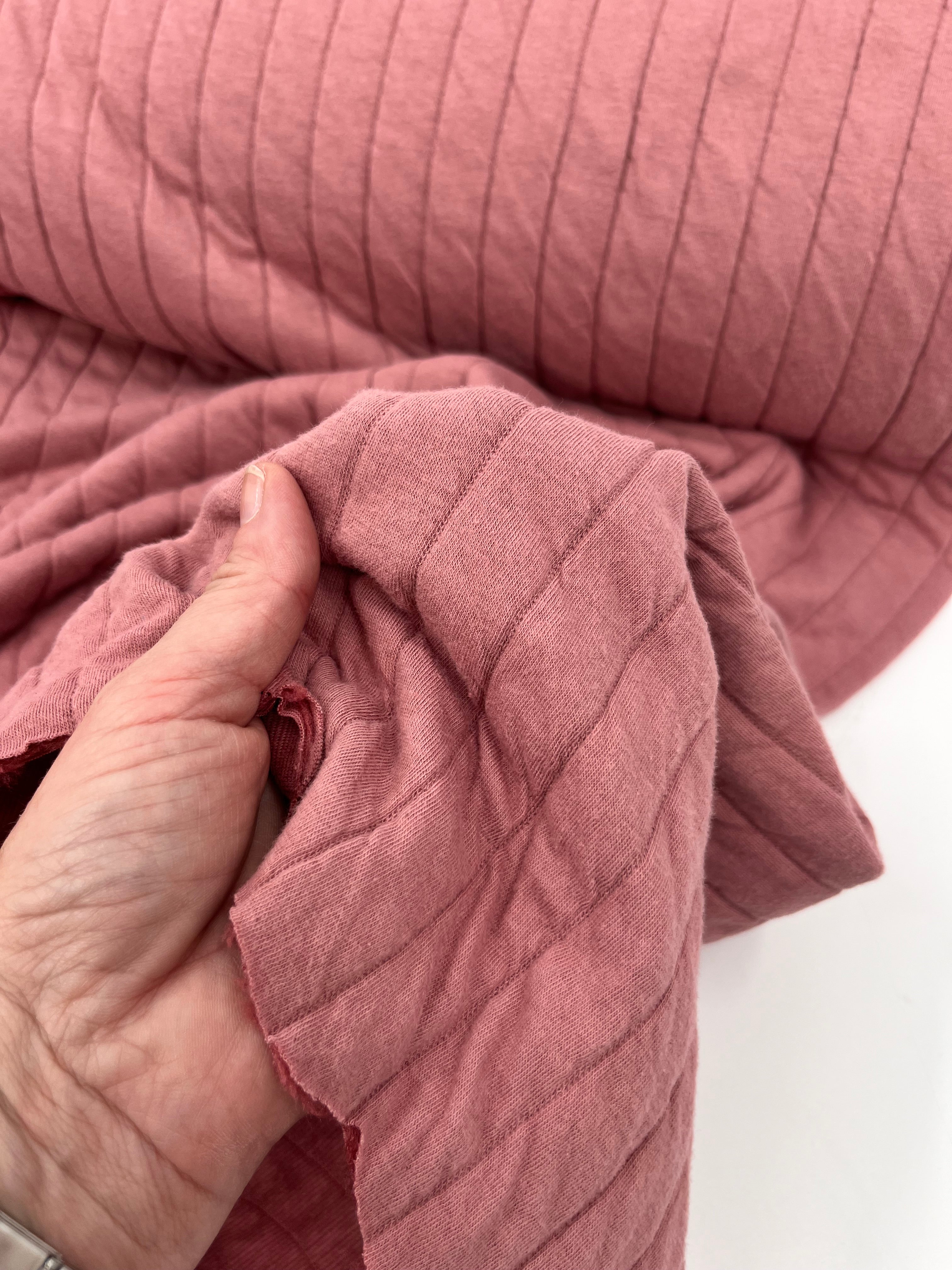 REMNANT | Dark Rose-Quilted Jersey stripe .6MTR