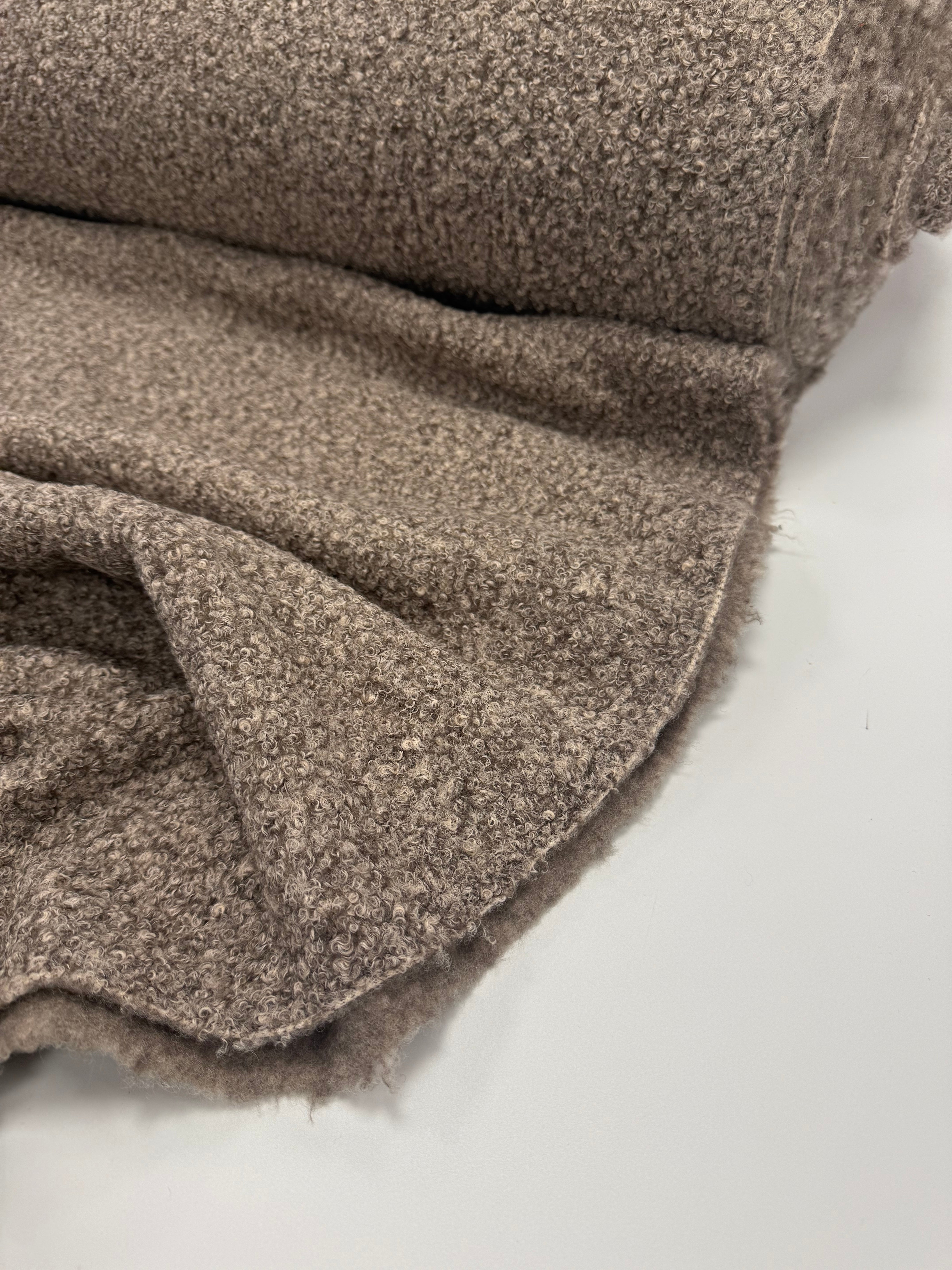Wrap yourself in the comforting embrace of our Bouclé fabric— a luxuriously soft, textured coating fabric with a beautiful, looped surface and a smooth reverse side. This mid-weight bouclé drapes gently while offering warmth and body, making it perfect for layering pieces and outerwear. Its tactile texture and muted tones bring depth and sophistication to every project.