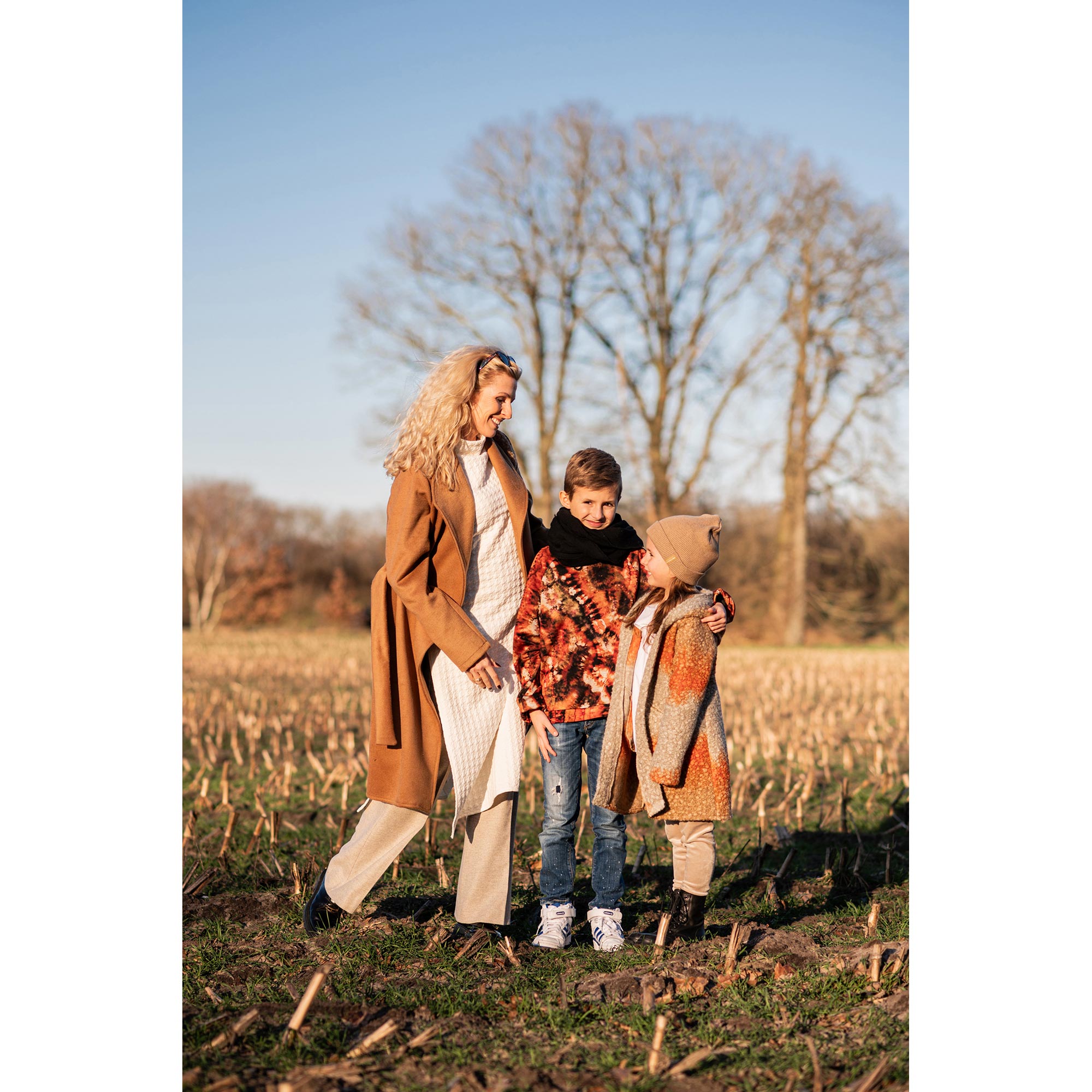 This bouclé fabric features the same beautifully textured curly surface with a striking beige-to-orange ombre effect. Soft yet structured, it’s ideal for outerwear, skirts, dresses, or chic accessories. The warm tones make it a standout choice for autumn and winter projects.
