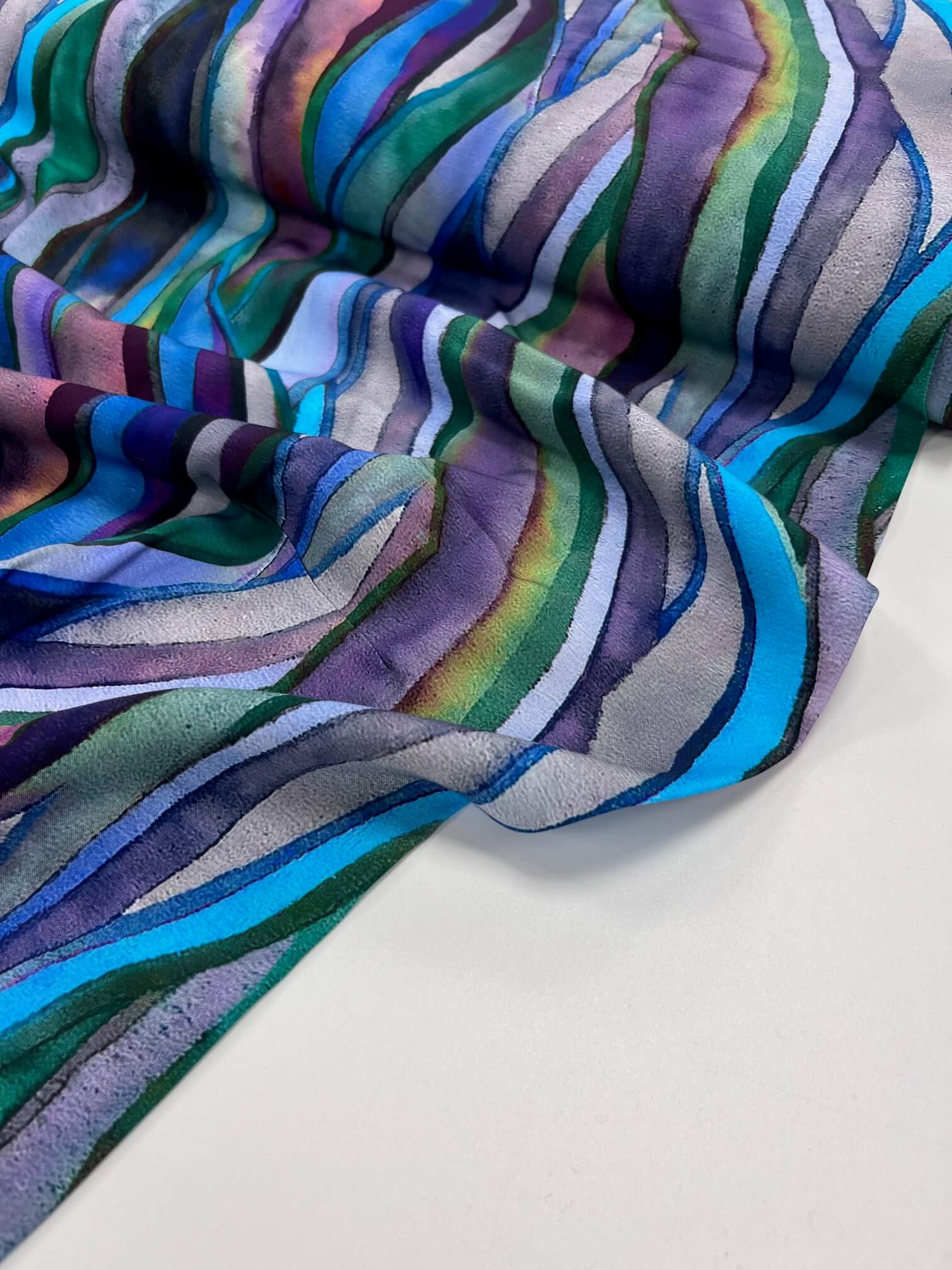 A cool, serene palette of turquoise, violet, jade, and soft stone grey. The colours blend like sunlight refracting through clear water, creating a soothing, aquatic feel with a dreamy painterly finish.