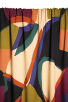 A bold painterly print in warm autumn tones, with sweeping brushstrokes of mustard, rust, teal, and deep purple. The abstract design feels modern yet cozy, perfect for statement dresses, blouses, or swishy skirts.