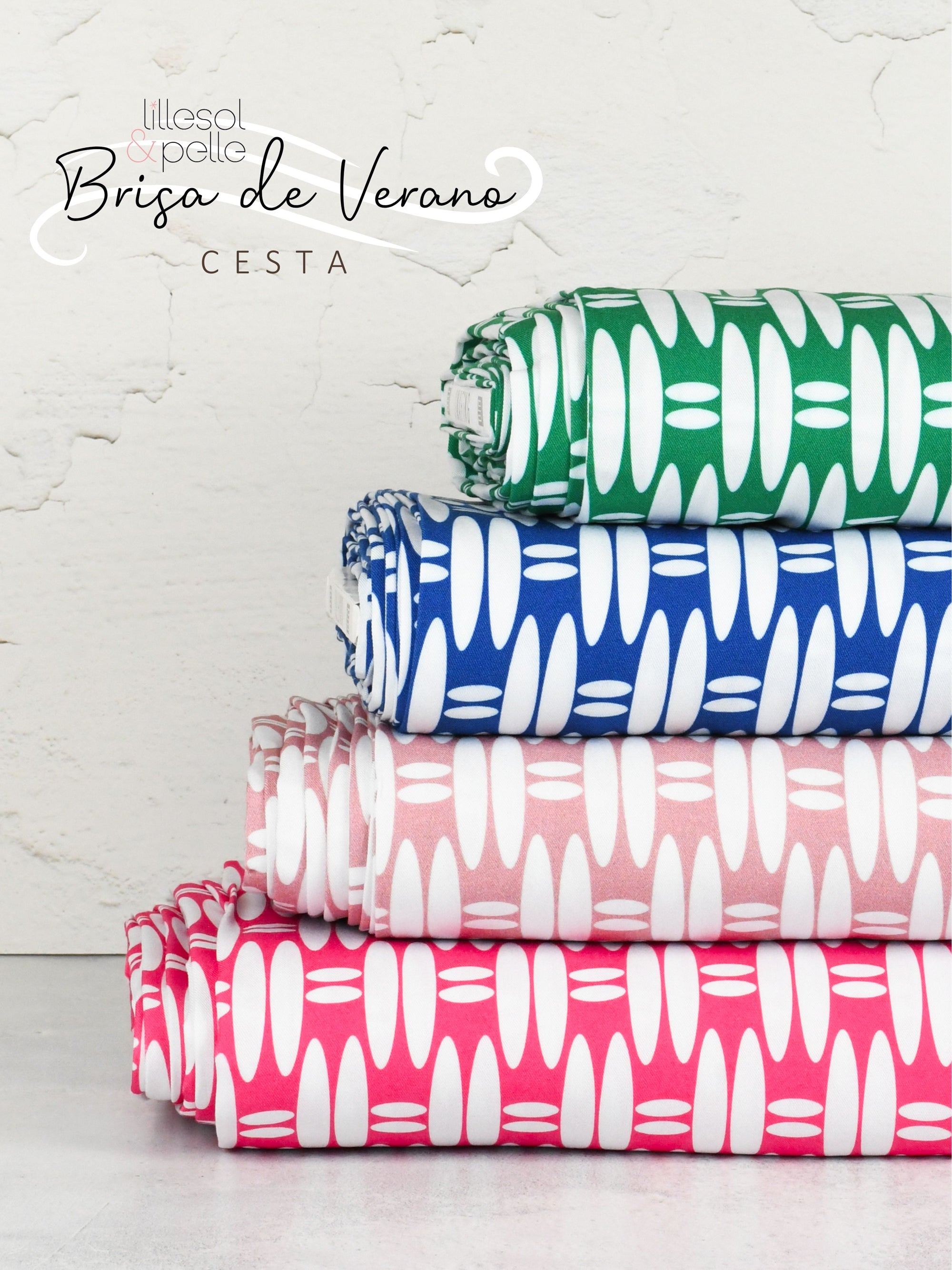 Inspired by woven basket patterns, the Cesta Collection features a bold geometric design that’s both modern and versatile. Available in green, blue, blush, and pink, this fabric is perfect for creating dresses, skirts, tops, and playful accessories. With its crisp lines and vibrant colours, Cesta adds a fresh, contemporary twist to any handmade wardrobe.