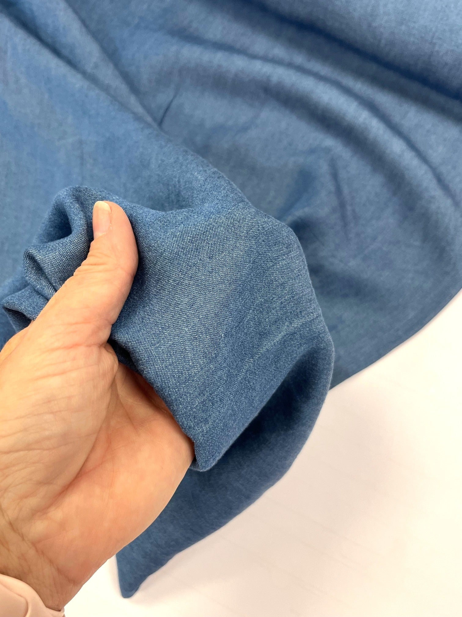 • Softness & Drapability: Unlike stiff denim, this lyocell denim has a silky hand feel and fluid movement, perfect for blouses, dresses, shirts, and wide-leg trousers.
