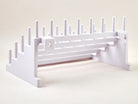 Each spindle is 3cm high, and the rack measures 12 x 23.5 x 15cm (d/w/h) — compact yet roomy enough to keep your favourite threads close at hand.
